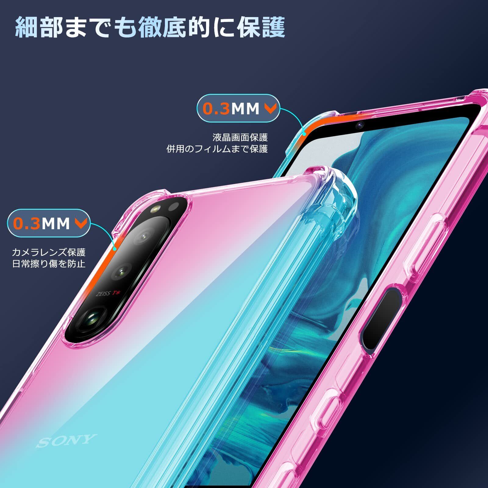 Xperia 10 III ケース 耐衝撃 クリア 透明 tpu SO-52B/SOG04 カバー クリア スリム 薄型 シリコン 指紋防止 米軍MIL規格取得 Xperia 10 IIIカバー 衝撃吸収 滑り止め カメラ保護 携帯カバー ワイヤレス 充電対応 おしゃれ 黄変防止 防塵 携帯カバー ピンク+緑D543-23