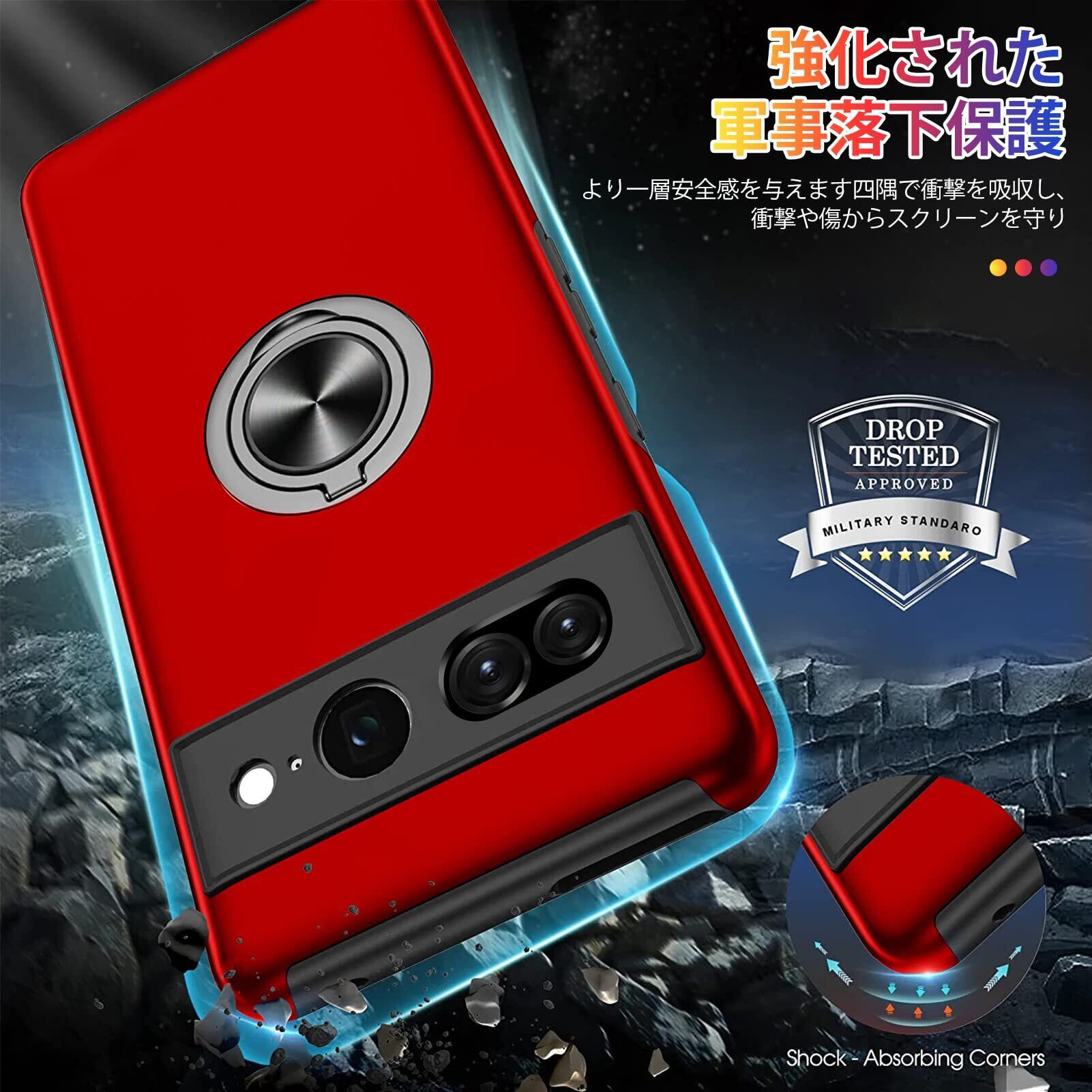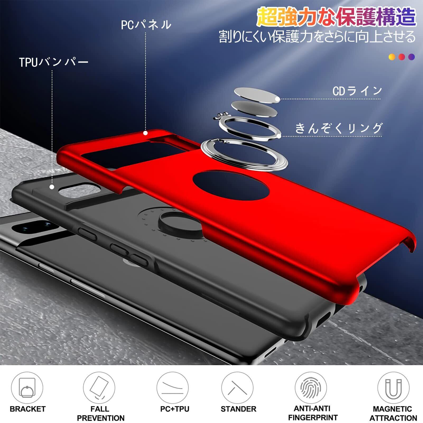 Google Pixel 7A ケース リング付き 耐衝撃 tpu pc 二重構造 全面保護 一体型スマホケース グーグル ピクセル 7a ケース 衝撃吸収 シリコン 360°回転 スタンド機能 軽量 薄型 車載ホルダー対応 米軍MIL規格 指紋防止 人気 携帯カバー 赤 ZW75-78
