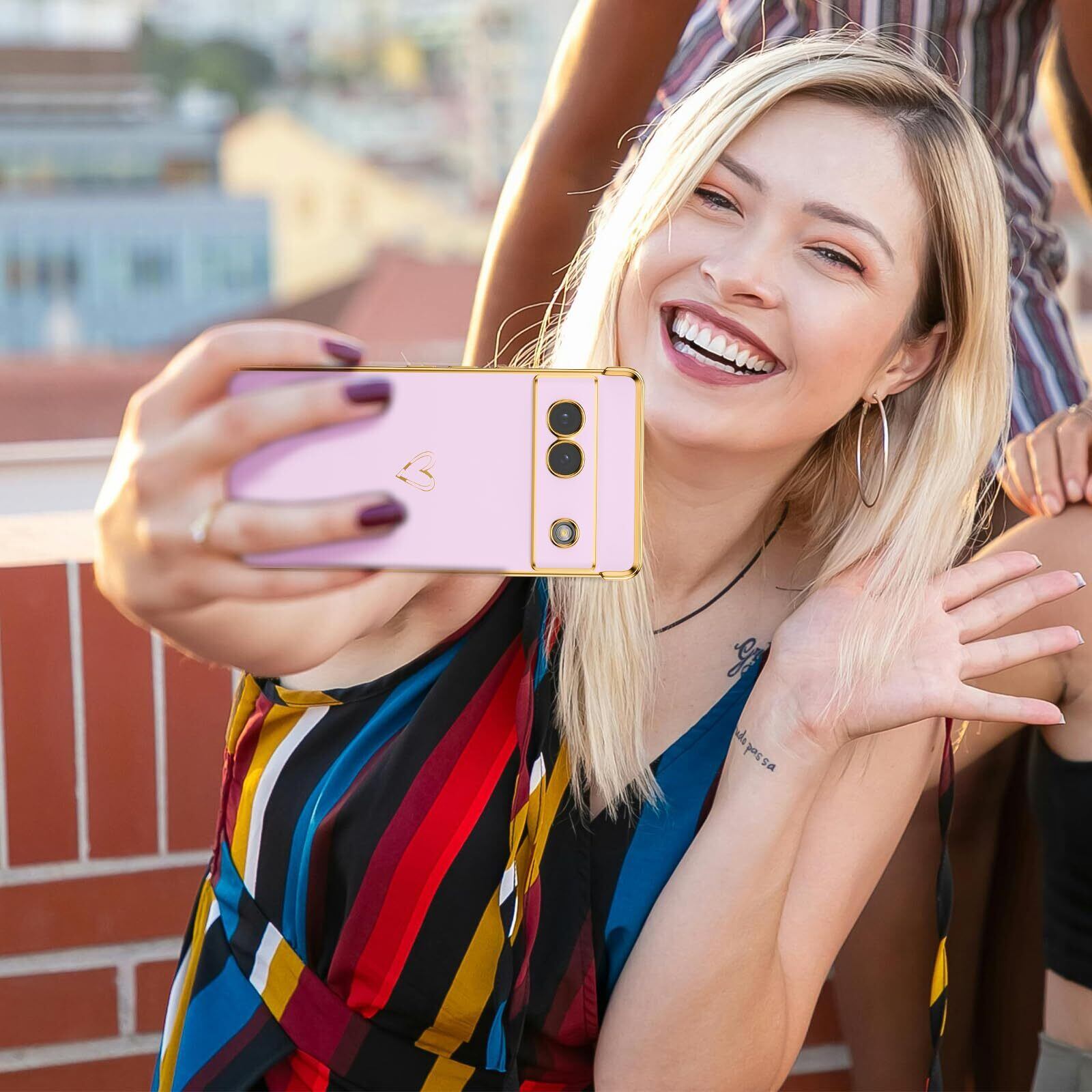 QLTYPRI Google Pixel 7a ケース ハート Pixel7a ケース ピクセル7a カバー おしゃれ 韓国 可愛い メッキ加工 ソフト TPU 薄型 軽量 耐衝撃 スマホケース ワイヤレス充電対応 ストラップホール付き - パープル #2