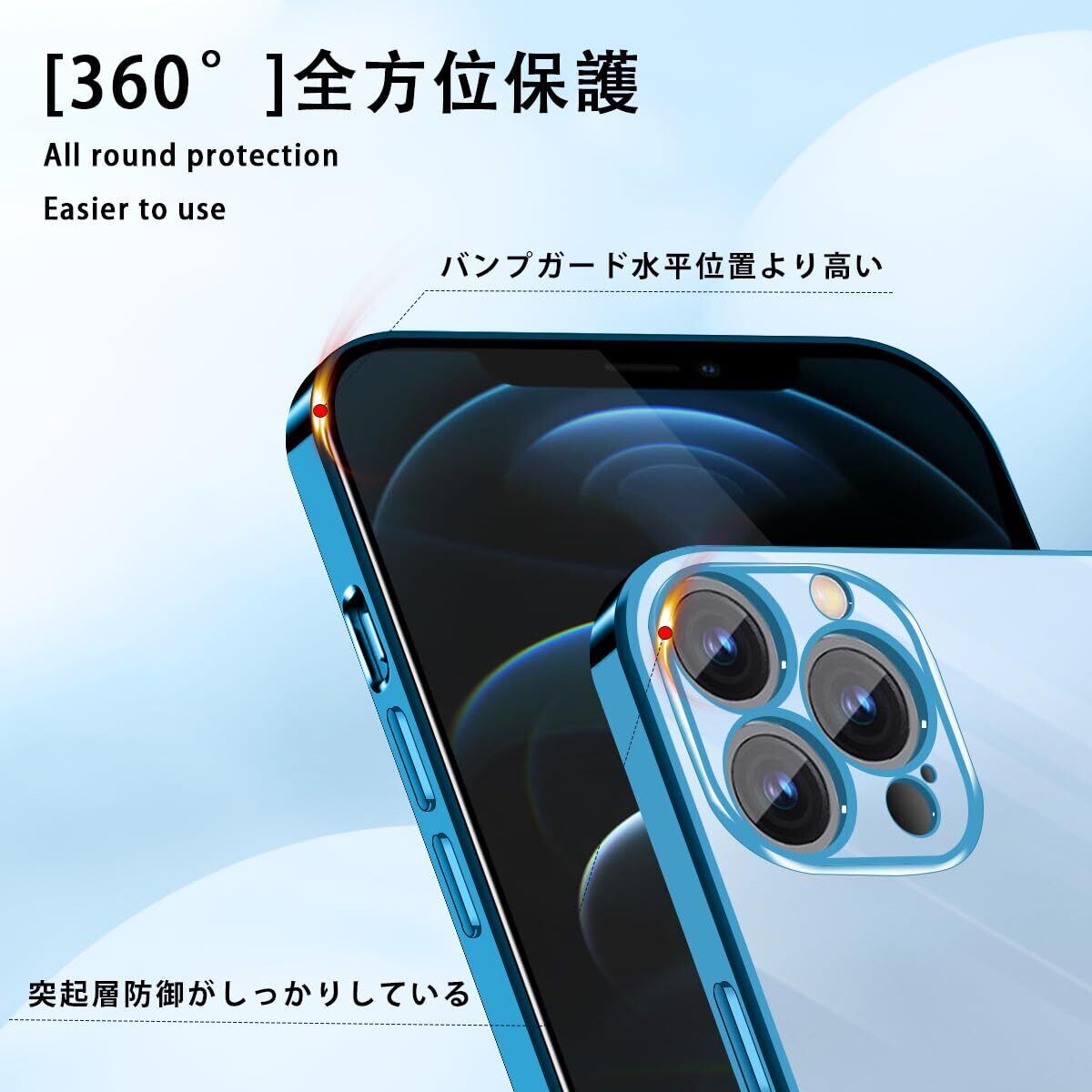 JOUMIN YAO iPhone 12 Pro Max ケース クリア TPU 黄ばみにくい 韓国 カバー アイフォン12ProMax ソフト 透明 スマホケース TPU 薄型 耐衝撃 軽量 メッキ加工 携帯カバー ストラップホール付き 落下防止 擦り傷防止 6.7インチ(ブルー)
