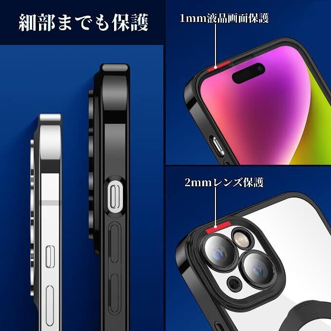 【新着商品】iPhone 15 Plus 用 ケース MagSafe対応 リング付き クリア iPhone15Plus 用 カバー 縦横両対応 車載ホルダー対応 多機能 耐衝撃 安心保護 TPU スマホケース ワイアレス充電対応 透明 軽量 薄型 アイフォン15 Plus 用 ケース (ブラック)