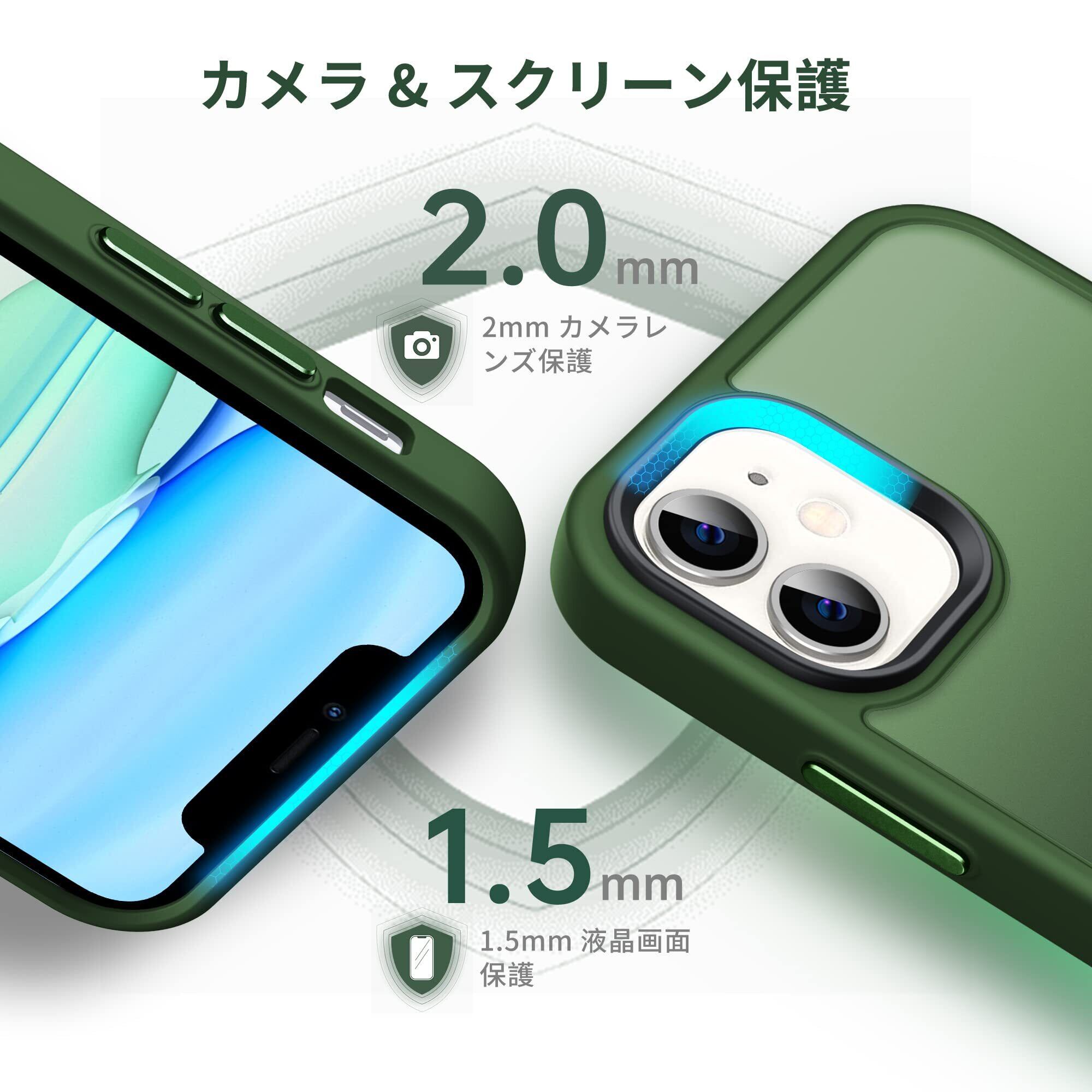 Anqrp iPhone11 用 ケース 半透明 耐衝撃 滑り止め 米軍MIL規格 指紋防止 マット感ケース ストラップホール付き ワイヤレス充電対応 スマホケース アイフォン 11 カバー 6.1インチ マットグリーン