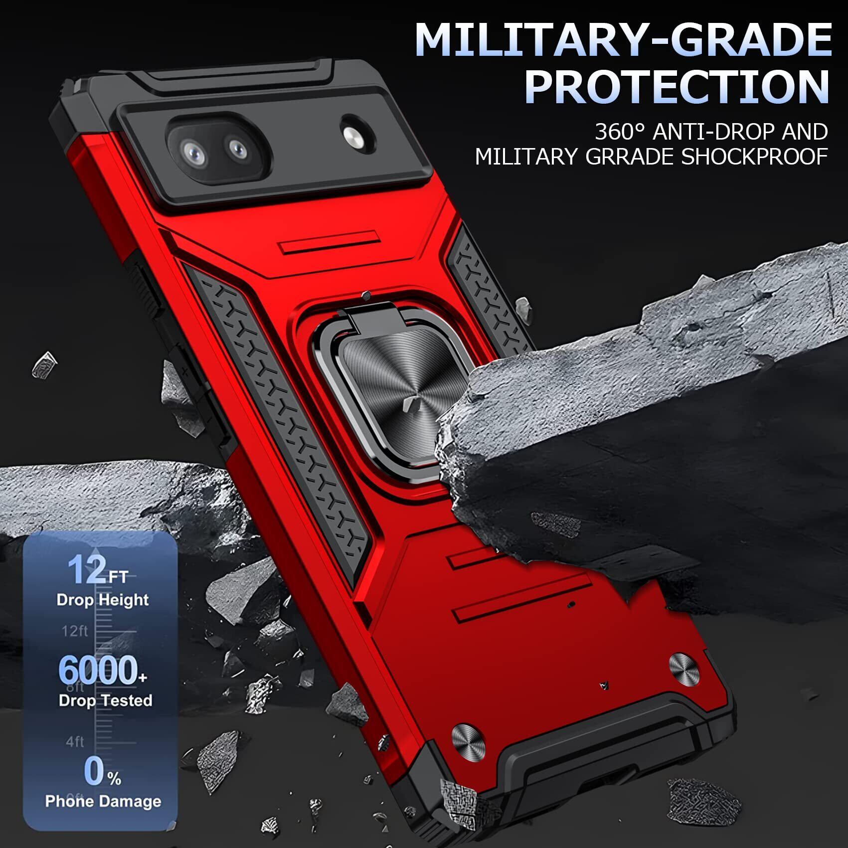 【在庫セール】【WYEPXOL】Google Pixel 6A ケース リング付き 衝撃吸収 tpu pc 二重構造 米軍MIL規格 全面保護 一体型スマホケース 薄型 グーグル ピクセル 6a ケース シリコン バンパー 耐衝撃 360°回転 スタンド機能 車載ホルダー対応 耐久 滑り防止 人気 携帯カバー 赤 ZW65-10