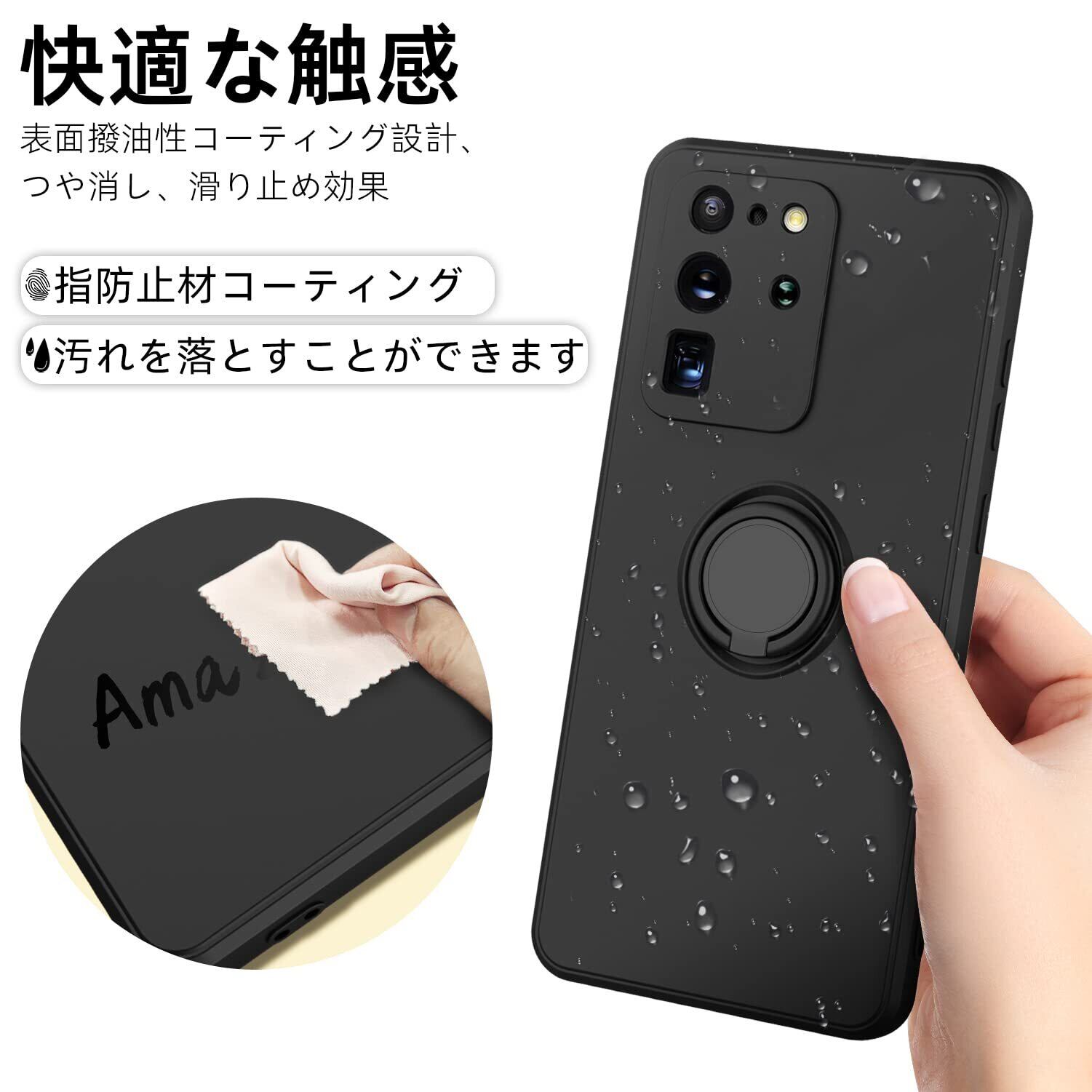 Galaxy note10 plus ケース リング シリコン 耐衝撃 カバー tpu 指紋防止 リング付き車載ホルダー対応 柔軟 軽量 落下防止 スタンド機能 滑り止め 着脱簡単 一体型 カバーQ08005-note10p-01-CP