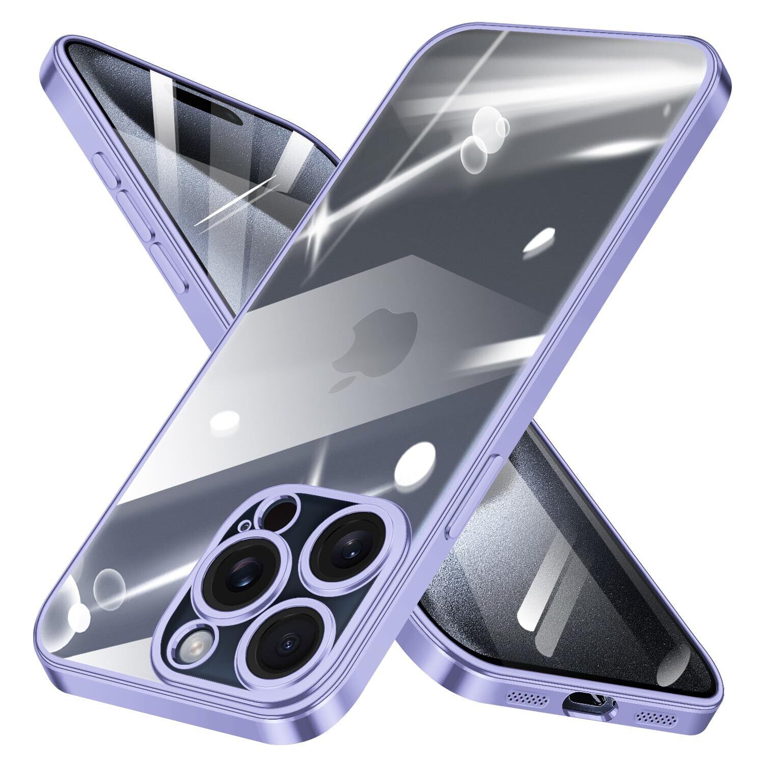 【人気商品】iPhone 15 Pro 用 ケース クリア 【カメラレンズ保護付き】 iPhone15pro スマホケース アイフォン15プロ カバー 透明 TPU 薄型 耐衝撃 ストラップホール付き iphone15 pro 携帯ケース 薄紫