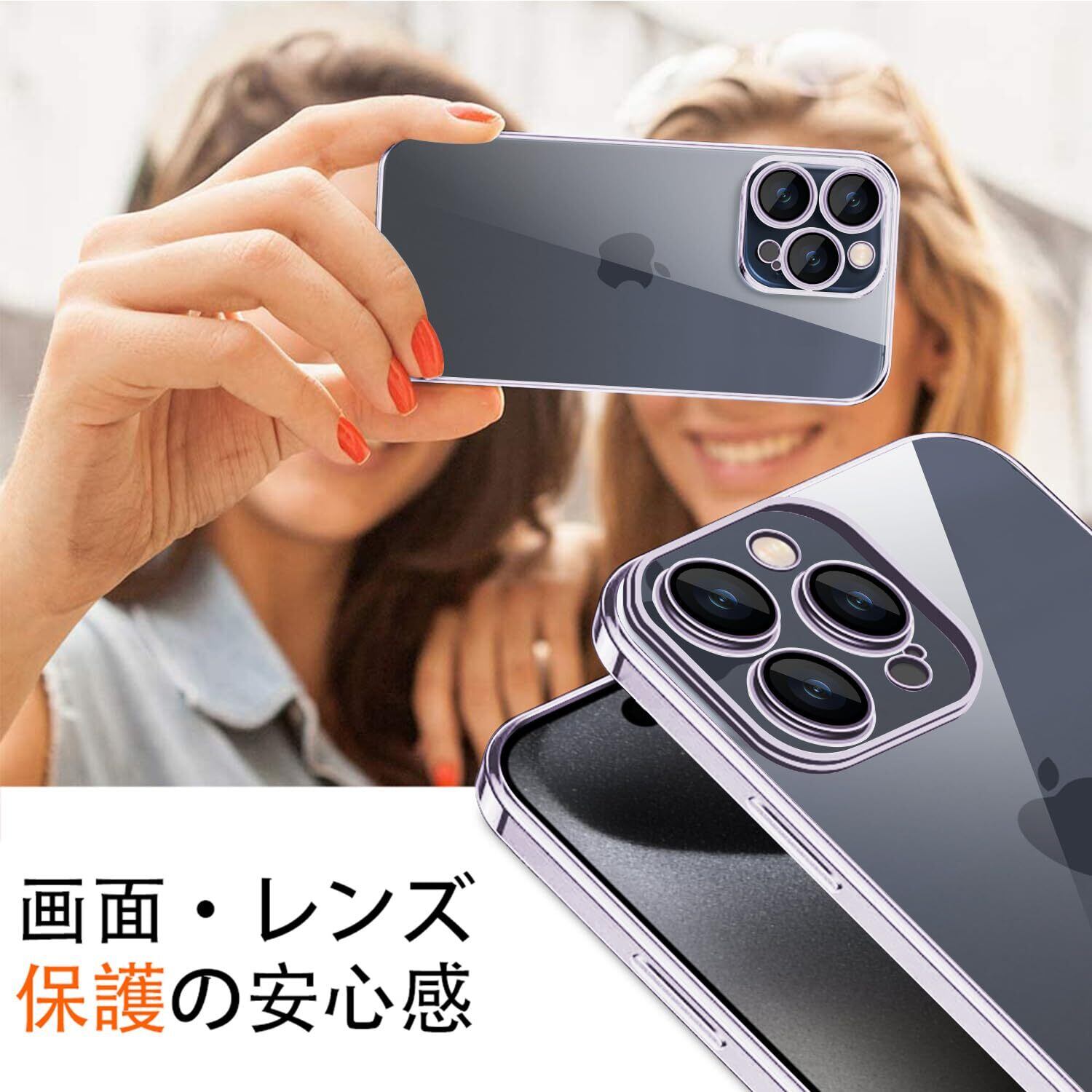 iPhone 15 Pro 用 ケース クリア 【カメラレンズ保護付き】 iPhone15pro スマホケース アイフォン15プロ カバー 透明 TPU 薄型 耐衝撃 ストラップホール付き iphone15 pro 携帯ケース 薄紫