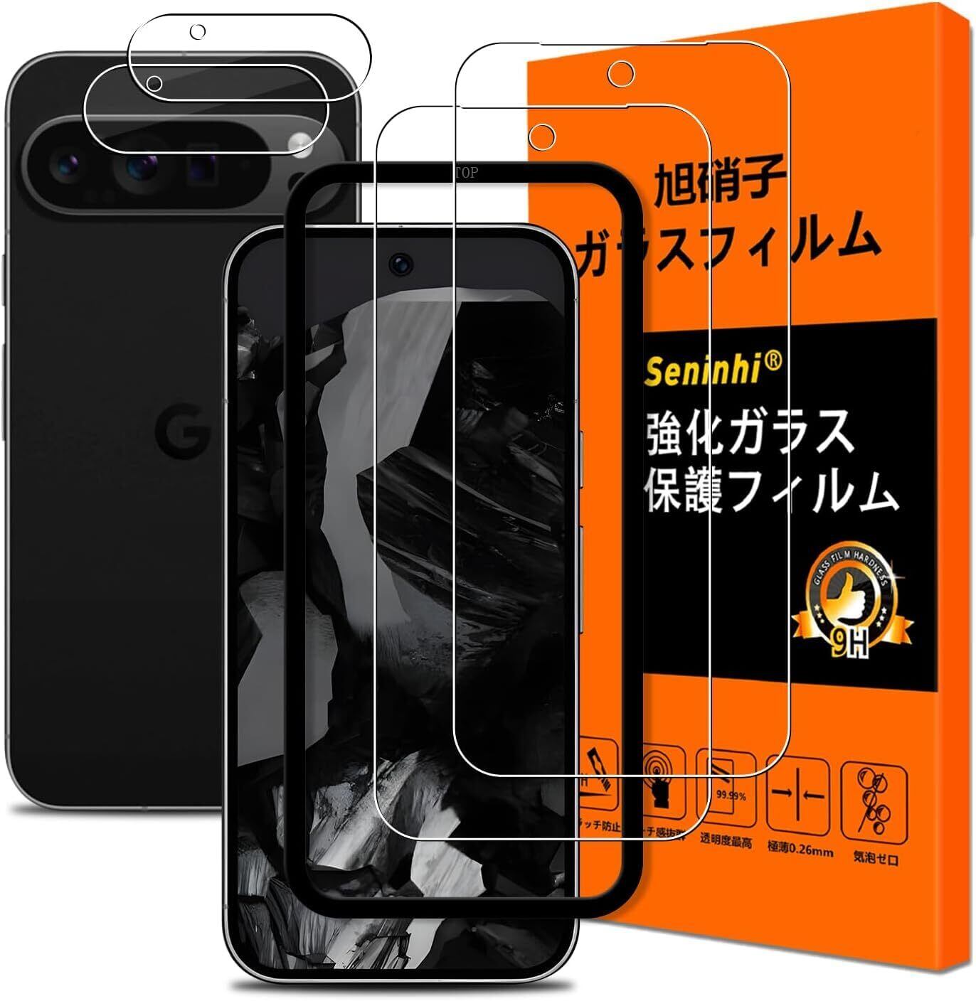対応 Google Pixel 9 PRO XL フイルム ガイド枠付き【2+2枚セット 国産旭硝子素材】google pixel 9 pro xl ガラスフィルム +レンズ保護フィルム(2枚入)グーグルピクセル9PRO XL 保護フィルム ガラス さらさら 強化ガラス 高硬度9H 指紋防止 気泡防止 飛散防止 自動吸着 撥油性 耐衝撃 高透過率 貼り付け簡単 SEMP9PXL-221