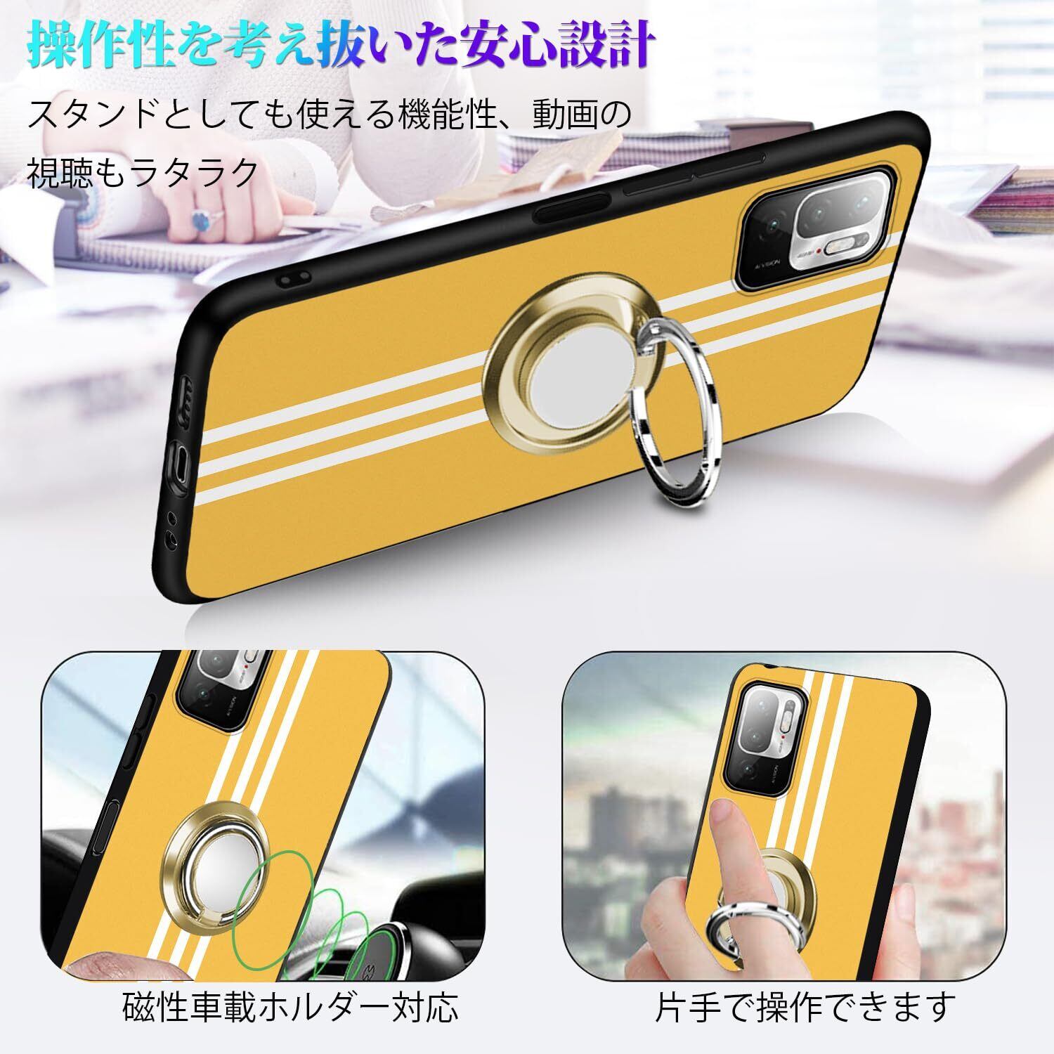 【新着商品】Xiaomi Redmi Note 10 JE ケース Redmi Note 10T ケース リング 耐衝撃 Redmi Note10 JE XIG02 カバー TPU 指紋防止 シリコン 車載ホルダー対応 360°回転 ストラップホール付き 滑り止め 落下防止 全面保護カバー(イエロー)