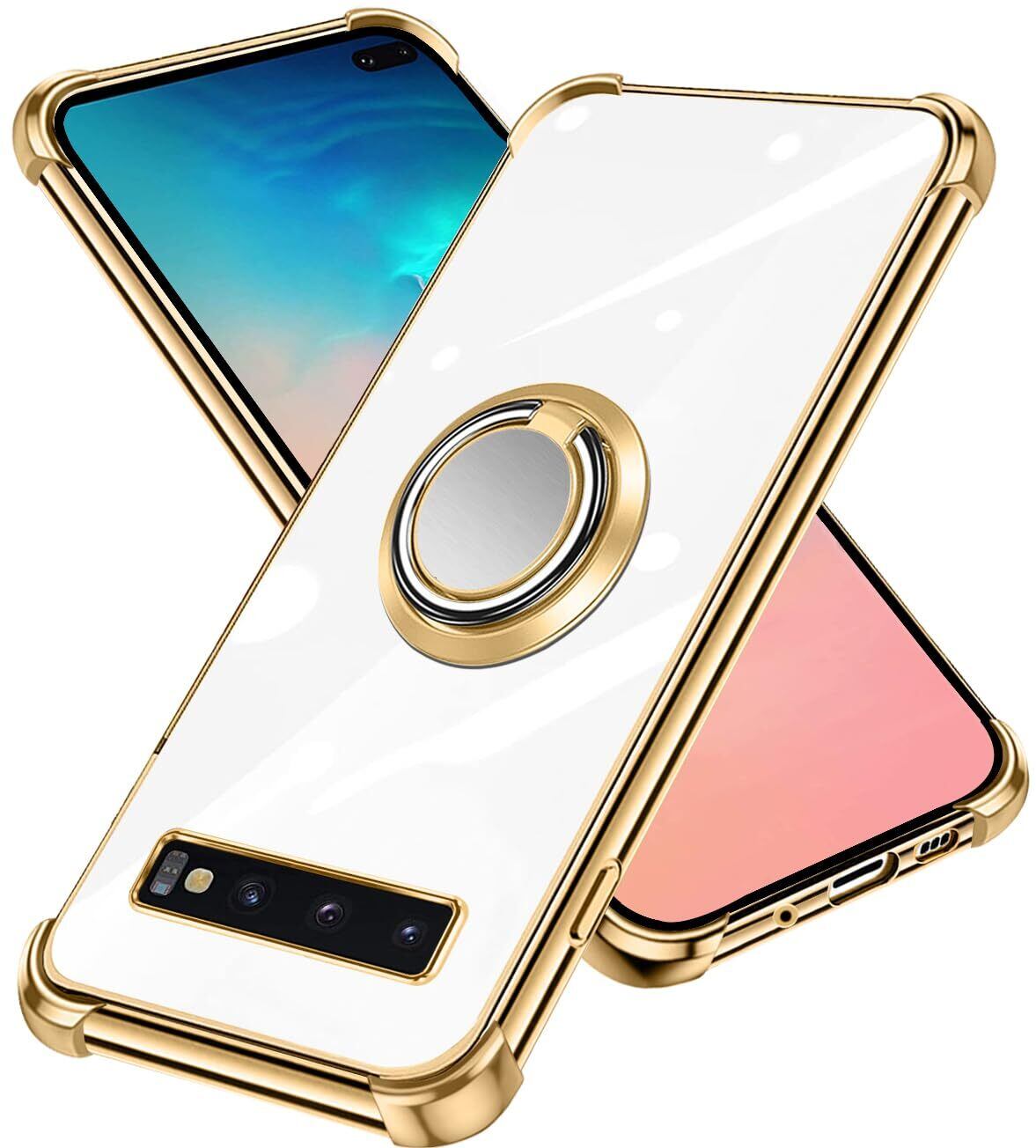 nahailun Galaxy S10 ケース クリア SC-03L SCV41 リング付き 耐衝撃 柔軟 galaxy s10 軽量TPU 透明 薄型 レンズ保護スマホ 落下防止 滑り止め、すり傷防止 360°回転 スタンド機能 車載ホルダー対応(ゴールド)