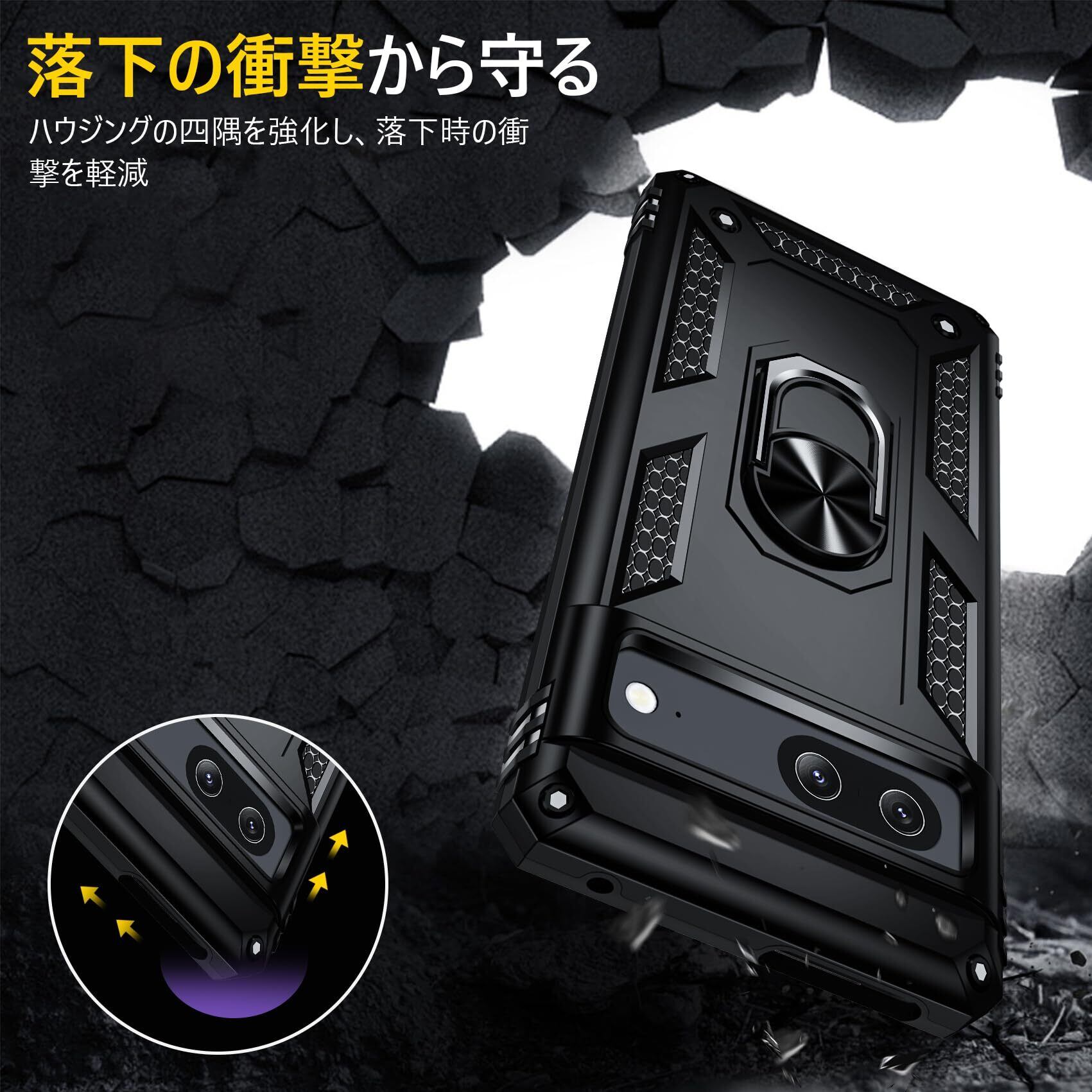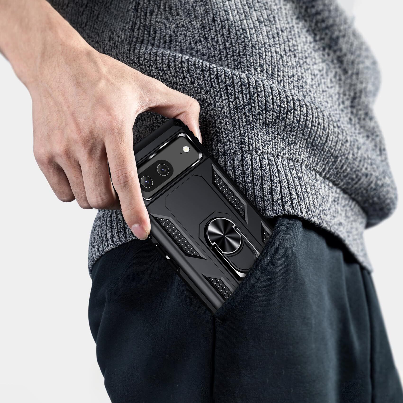 JSTNMEBO Google Pixel 8 用ケース リング付き 衝撃吸収 耐衝撃 頑丈 米軍MIL規格 スタンド機能 車載ホルダー対応 TPU PC素材 バンパー グーグル ピクセル 8 用ケース レンズ保護 滑り止め 擦り傷防止 一体型 全面保護カバー 黒J03-37