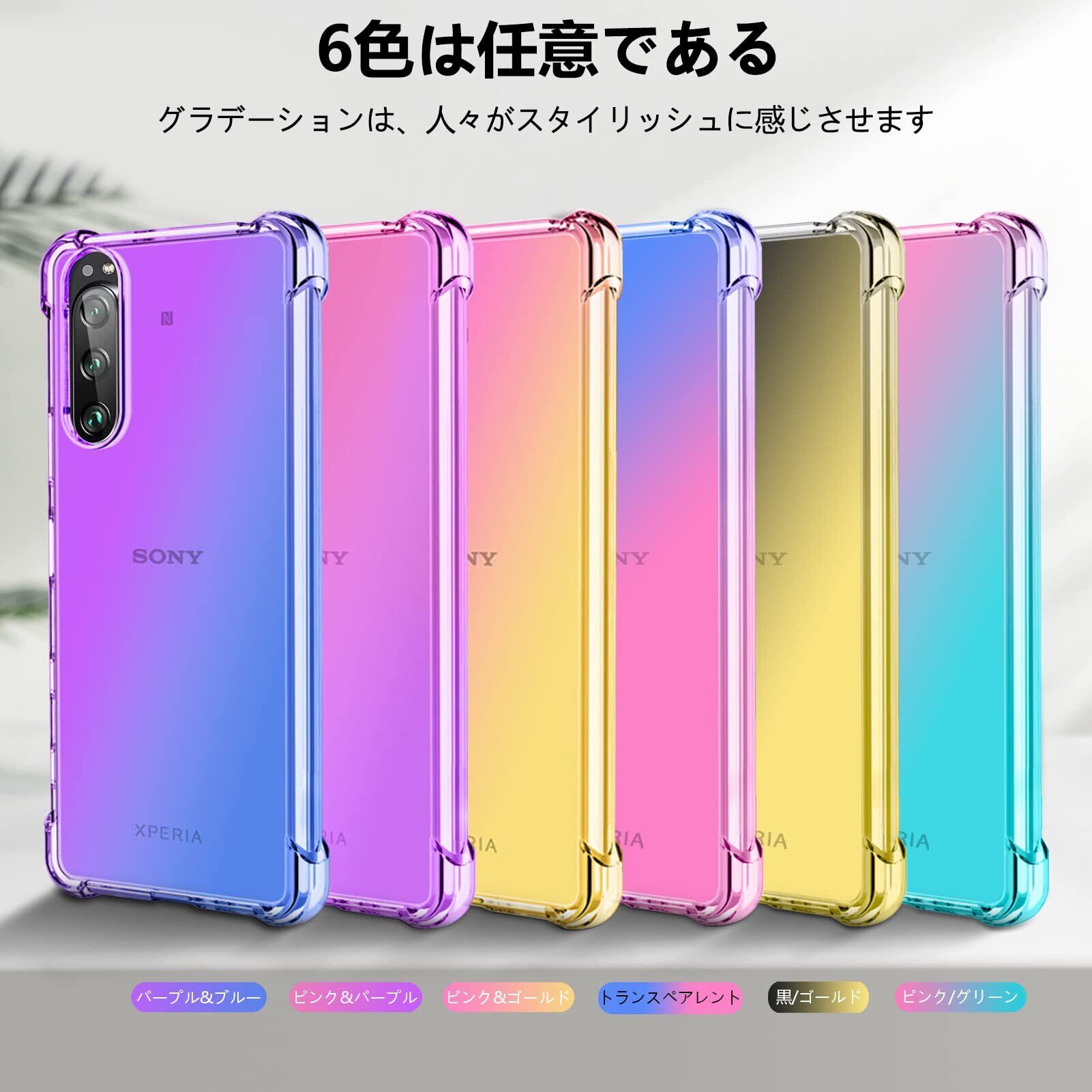 Xperia 1 ケース クリア 薄型 グラデーション色 ケース SO-03L SOV40 ケース 軽量 tpu 耐衝撃 スマホケース 透明 米軍MIL規格取得 おしゃれ 黄変防止防塵一体型 人気 エクスペリア 1 携帯カバー ブルー/ピンク MD-JBK-003-06