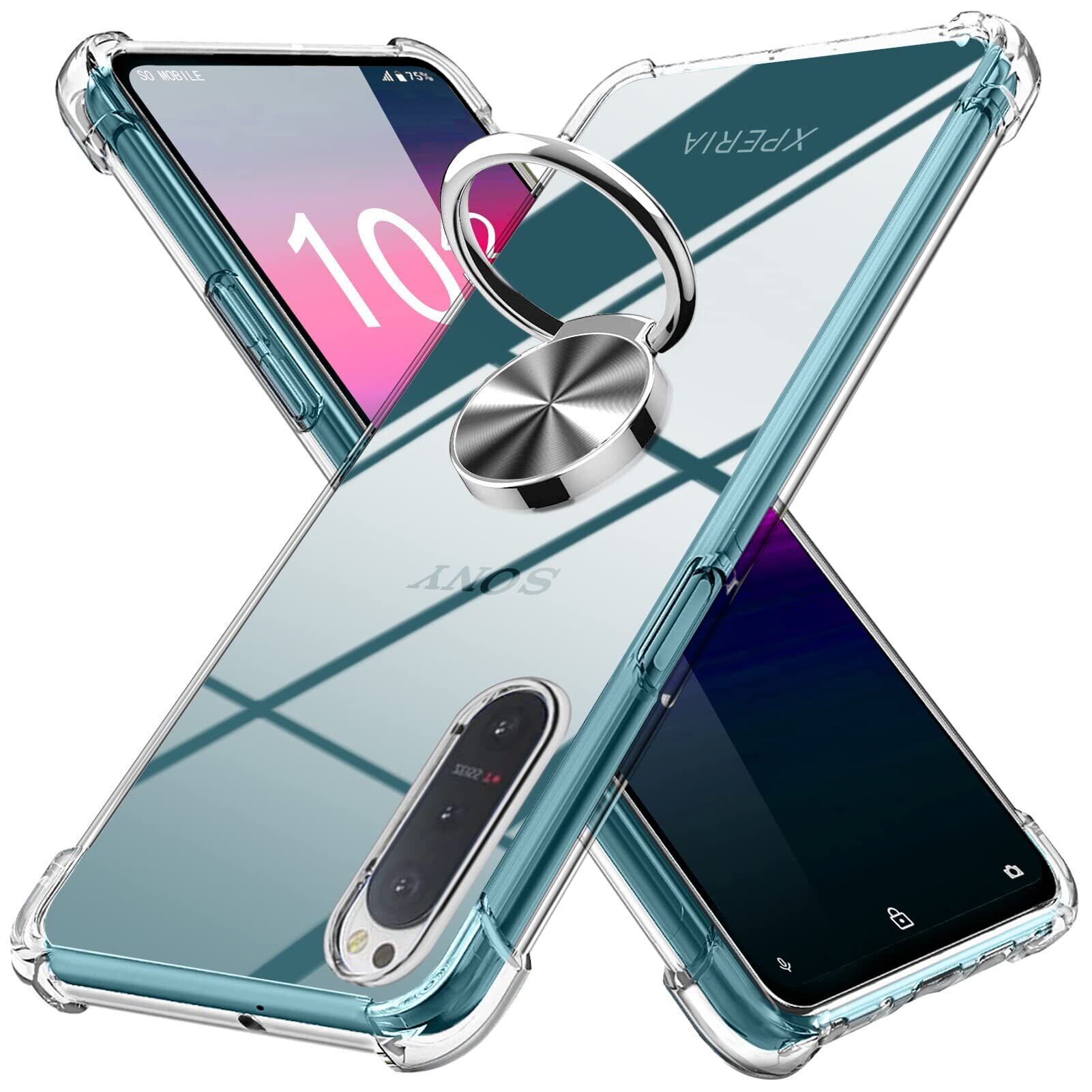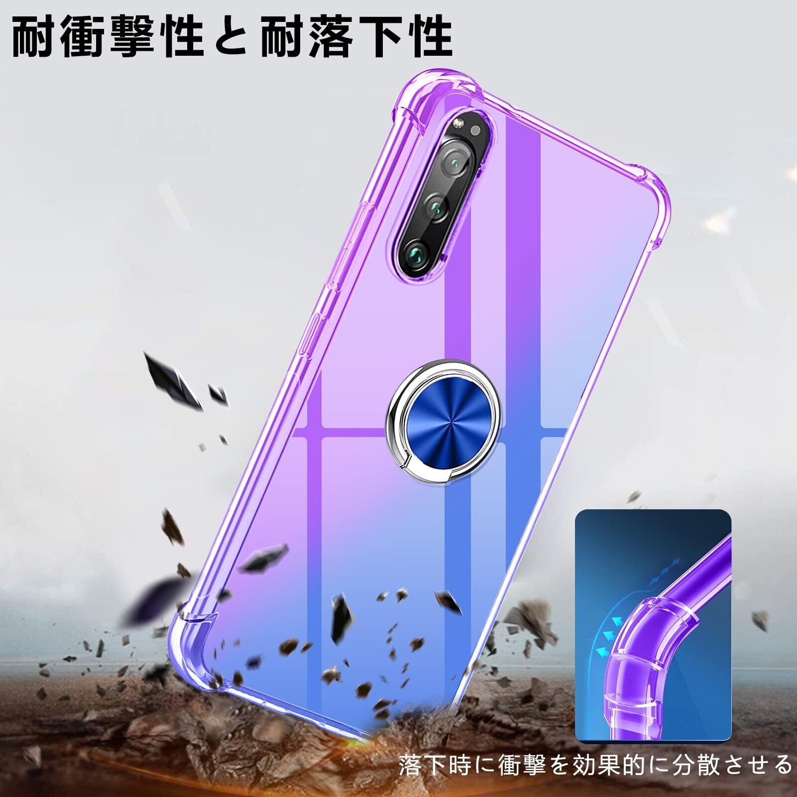 Xperia 5 II ケース リング 透明 TPU グラデーション色 SO-52A SOG02 ケース 耐衝撃 ソニー エクスペリア 5 II カバー クリア 車載ホルダー対応 一体型 落下防止 防塵 変形防止 全面保護 ソニー カバー 透明 MD-JBZH-03-04