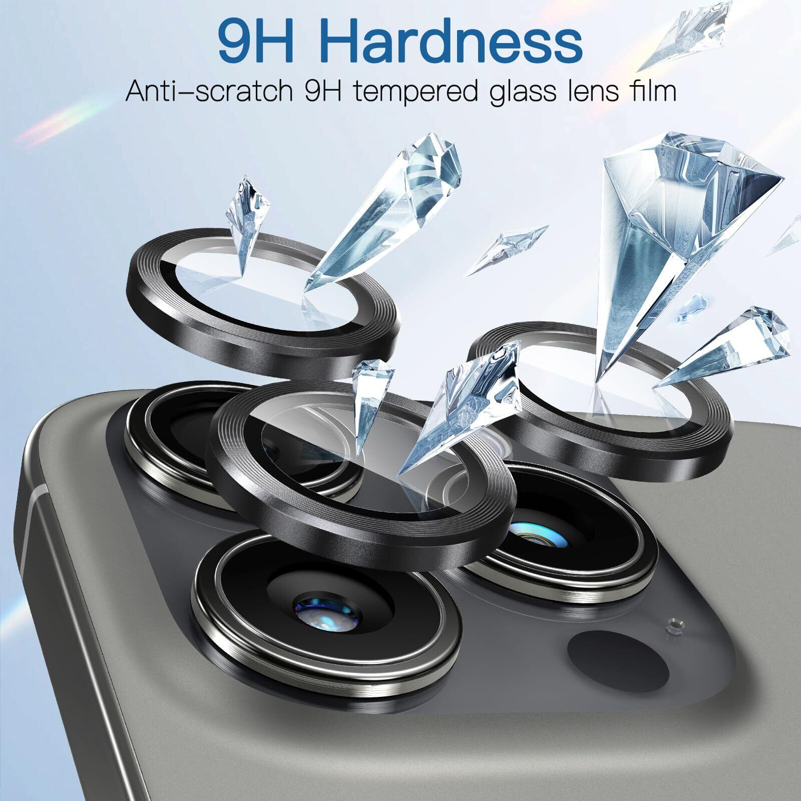 Uneawit カメラフィルム カメラ保護iPhone 15 Pro / 15 Pro Max用 レンズカバー カメラカバー レンズ保護カバー カメラ保護フィルム 宇宙航空材料 強化ガラス クリア 超高硬度9Hガラス 4層設計 360°保護 3眼レンズ保護 超高透過率 黒縁取り 露出オーバー防止 防塵 キズ防止 ブラック
