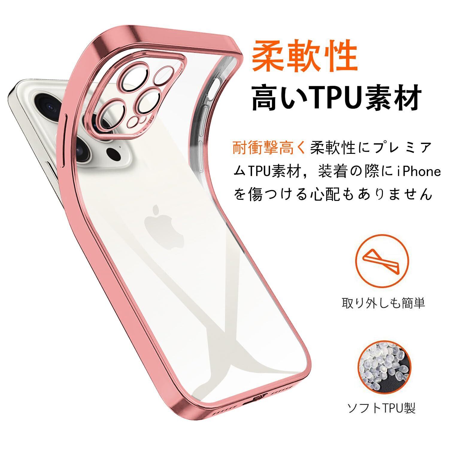 iPhone 15 Pro 用 ケース クリア【カメラレンズ保護付き】iPhone15pro スマホケース アイフォン 15プロ カバー 透明 ストラップホール付き 携帯ケース ローズゴールド