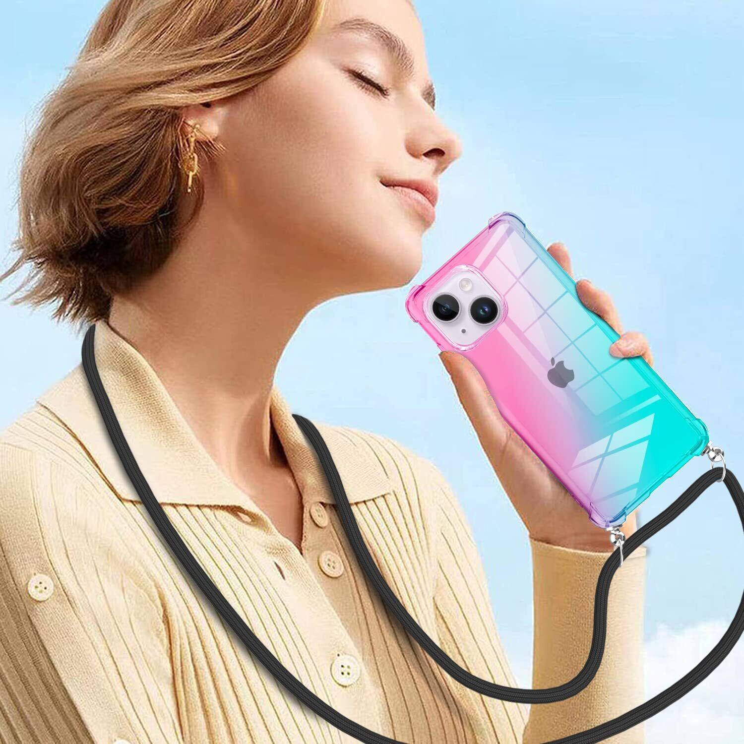 【在庫処分】Xperia XZ3 ケース クリア ソフト TPU グラデーション SOV39 801SO SO-01Lケース 耐衝撃 薄型 肩掛け 斜めかけ 縄掛けケース 黄変防止 軽量 一体型 かわいい ファッション 携帯カバー ピンク/グリーン AYS-9-44