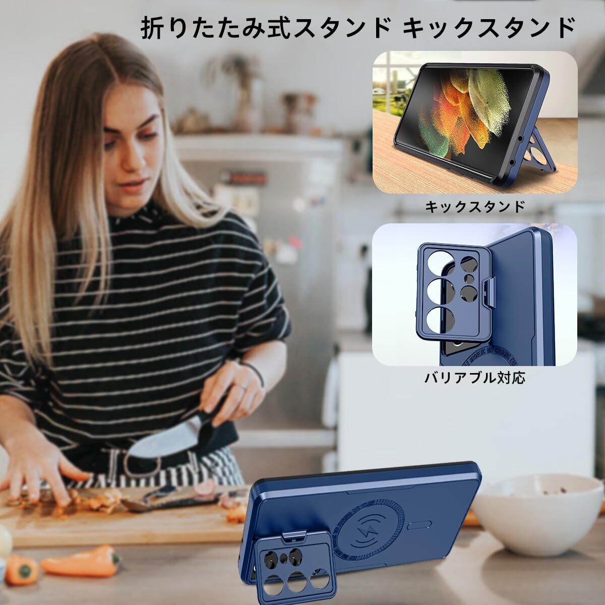 【新着商品】Galaxy S21 Ultra 5G ケース ギャラクシーS21ウルトラ スマホケース ンドカメラ保護 薄型 隠しスタンド 機能 ケース ンド レンズ保護 全面保護 耐衝撃 吸収 スマホ 携帯ケース 人気Case Cover ギャラクシー Samsung S21 21S S 21 S 21Ultra ウルトラ 背面 カバー レディース メンズ6.8インチ(青 ブルー)