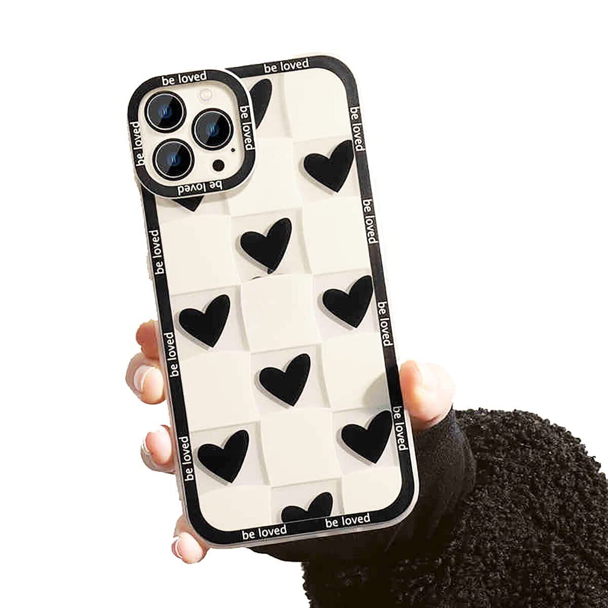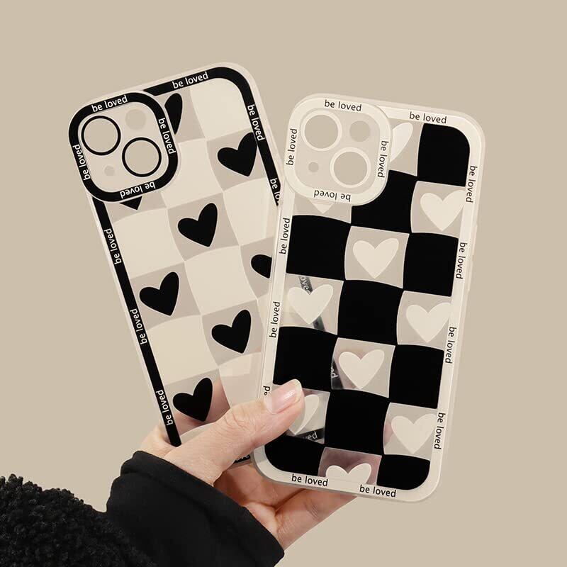 iPhone 13 Pro 用 ケース TPU素材 おしゃれ 白いチェッカー ブラック ハート パターン かわいい おしゃれ 滑り止め/指紋防止 全面保護 耐衝撃 アイフォン 13 Pro 用カバー シンプル おしゃれ 韓国 クリア iPhone 13 Pro ケース 6.1インチ
