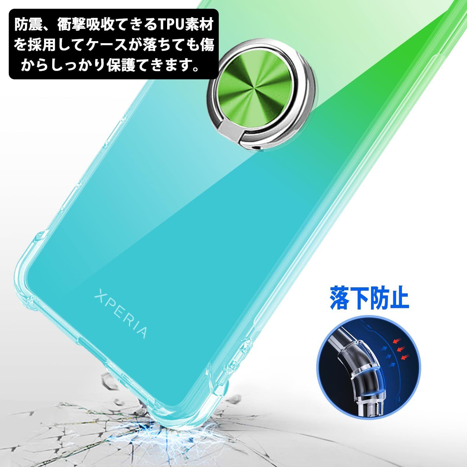 Xperia 5 ケース リング付き クリア透明 TPU 耐衝撃 Sony SO-01M SOV41 カバー 指紋防止 360°回転 黄変防止 薄型 米軍MIL規格 車載ホルダー対応 携帯カバー TPU 擦り傷防止 绿-绿 Q08008-XP5-01