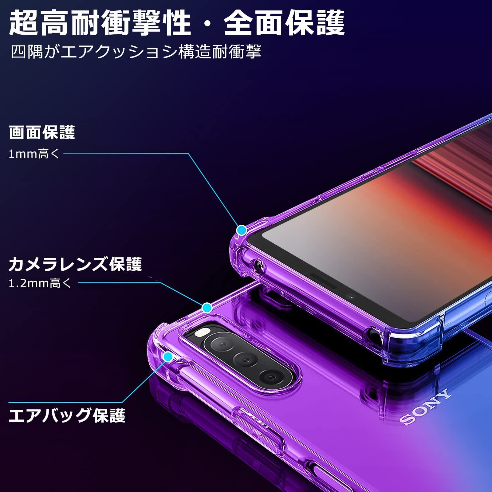 【特価商品】Xperia Ace ケース 耐衝撃 クリアSO-02L カバー クリア TPU 薄型 軽量 滑り止め 黄変防止 柔軟 Qi充電 衝撃吸収 指紋防止 米軍MIL規格取得 ワイヤレス充電に対応 カメラ保護 カバー 紫+青 331-Xperia Ace-04