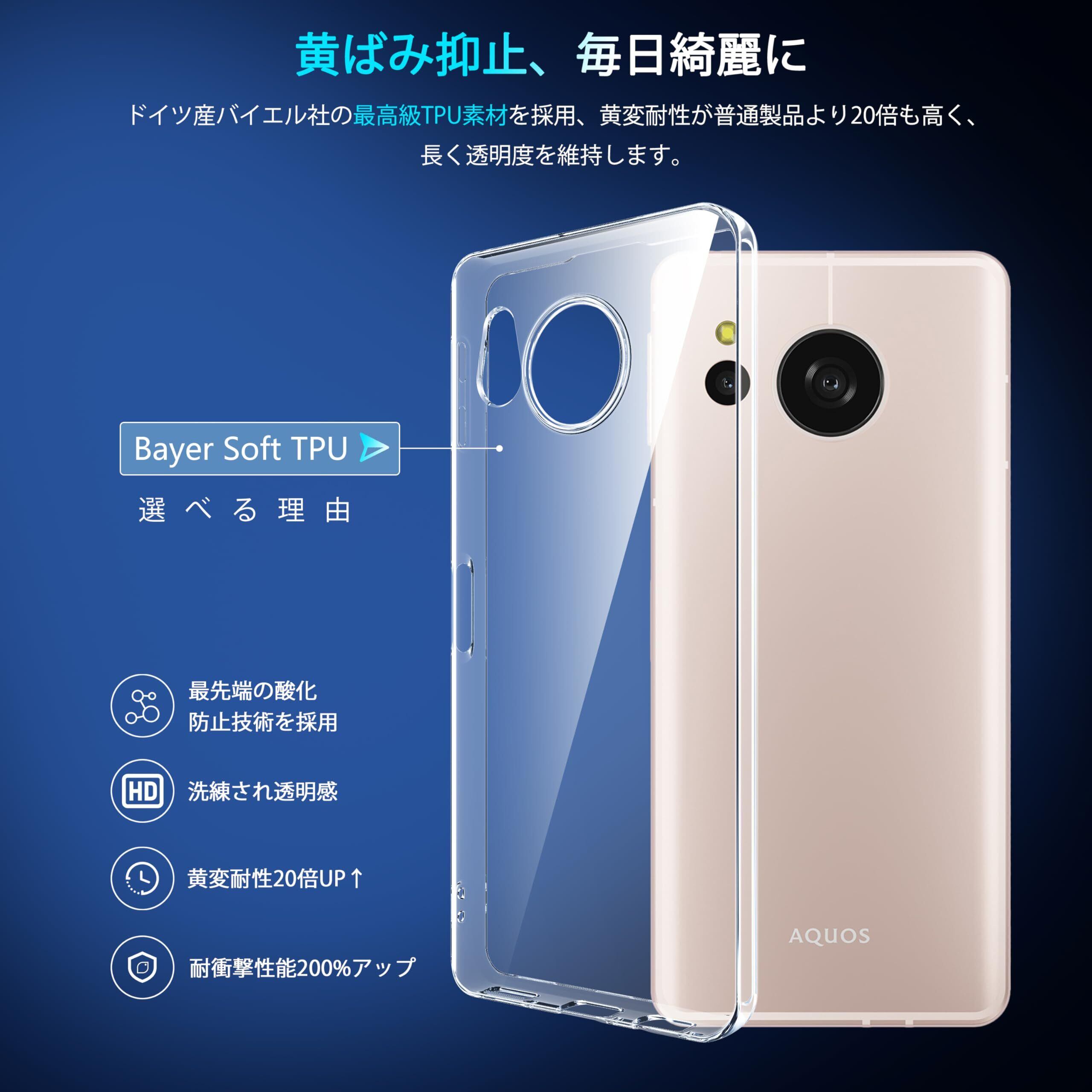 AQUOS sense8 用 ケース クリア 薄型 SH-54D | SHG11 ドイツバイエル製TPU素材 超耐衝撃 全透明 黄変防止 レンズ保護 指紋防止 ストラップホール付き アクオスセン8 用カバー クリスタル・クリア