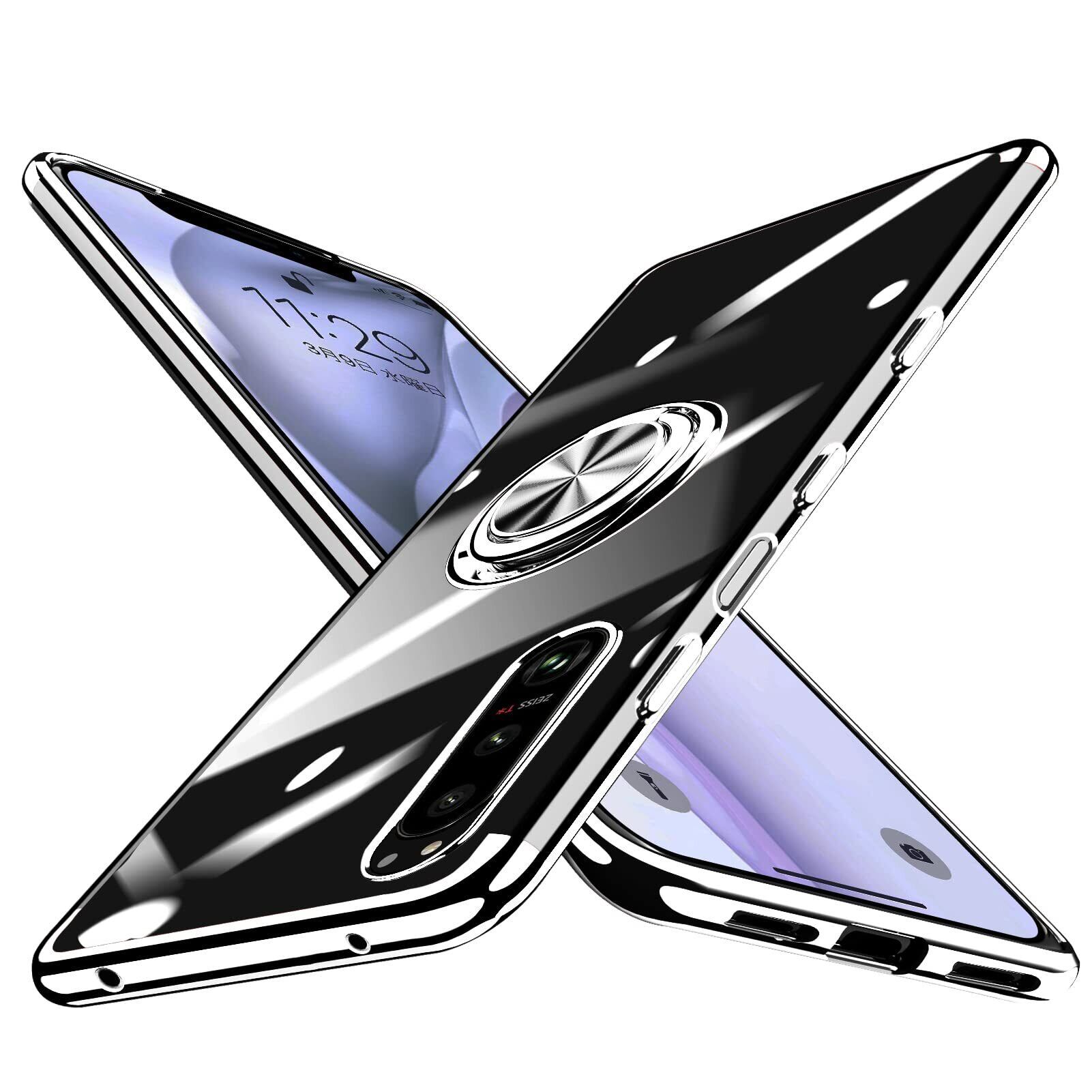 【WYEPXOL】Xperia 5 III ケース リング付き クリア tpu シリコン 軽量 薄型 メッキ加工 一体型 ソフト ソニー エクスペリア 5 iii SO-53B SOG05 カバー 耐衝撃 透明 黄ばみなし 耐久 車載ホルダー対応 ストラップホール付き スタンド機能 全面保護 人気 携帯カバー 銀 ZW56-74