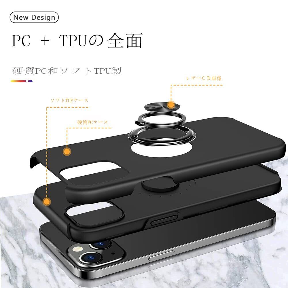Cakublse iPhone 13 Pro Max 用 ケース 强化 ガラス フィルム リング スタンド 付き 耐衝撃 いPhone13promax 対応 カバー 耐衝撃ケース リング付きケース 黑 ブラック