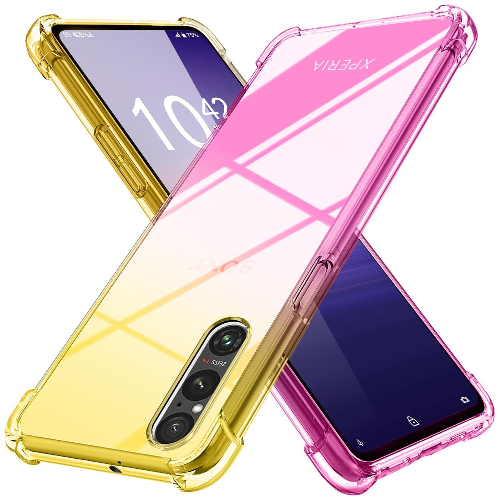 Xperia 1 V 用 ケース クリア 薄型 グラデーション色 ケース SO-51D/SOG10 用 ケース 軽量 tpu 耐衝撃 スマホケース 透明 米軍MIL規格取得 おしゃれ 黄変防止防塵一体型 人気 ソニー エクスペリア 1 V 用 携帯カバー ゴールド/ピンク MD-SXJB-33-04