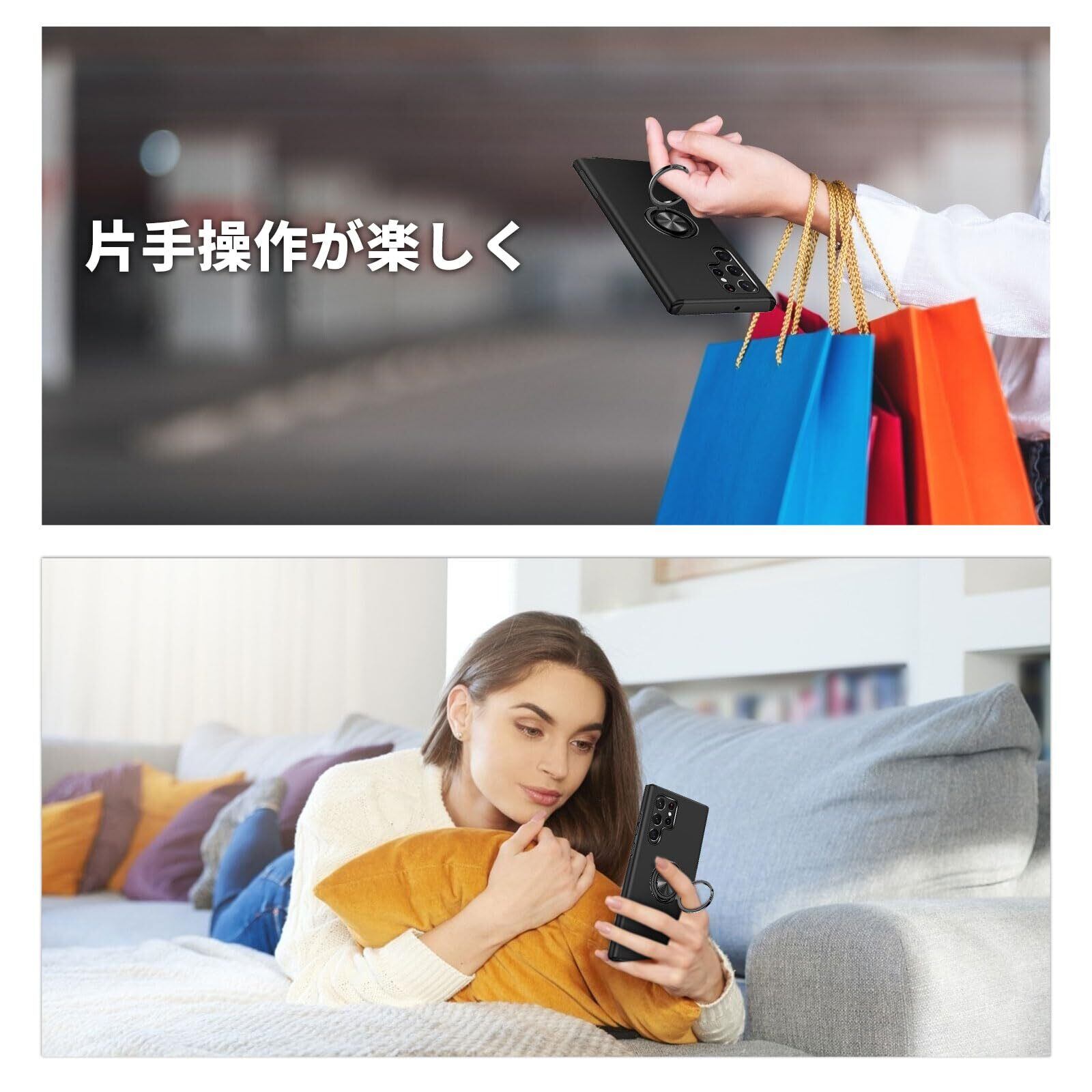 【在庫セール】Samsung Galaxy S24 Ultra ケース リング 耐衝撃 TPU+PC バンパーケース ギャラクシーS24 ウルトラ スマホケース SC-52E SCG26 頑丈 スタンド機能 車載ホルダー対応 全面保護 落下防止 防塵 指紋防止 傷防止 衝撃吸収 Galaxy S24 Ultra 用 携帯カバー(ブラック)