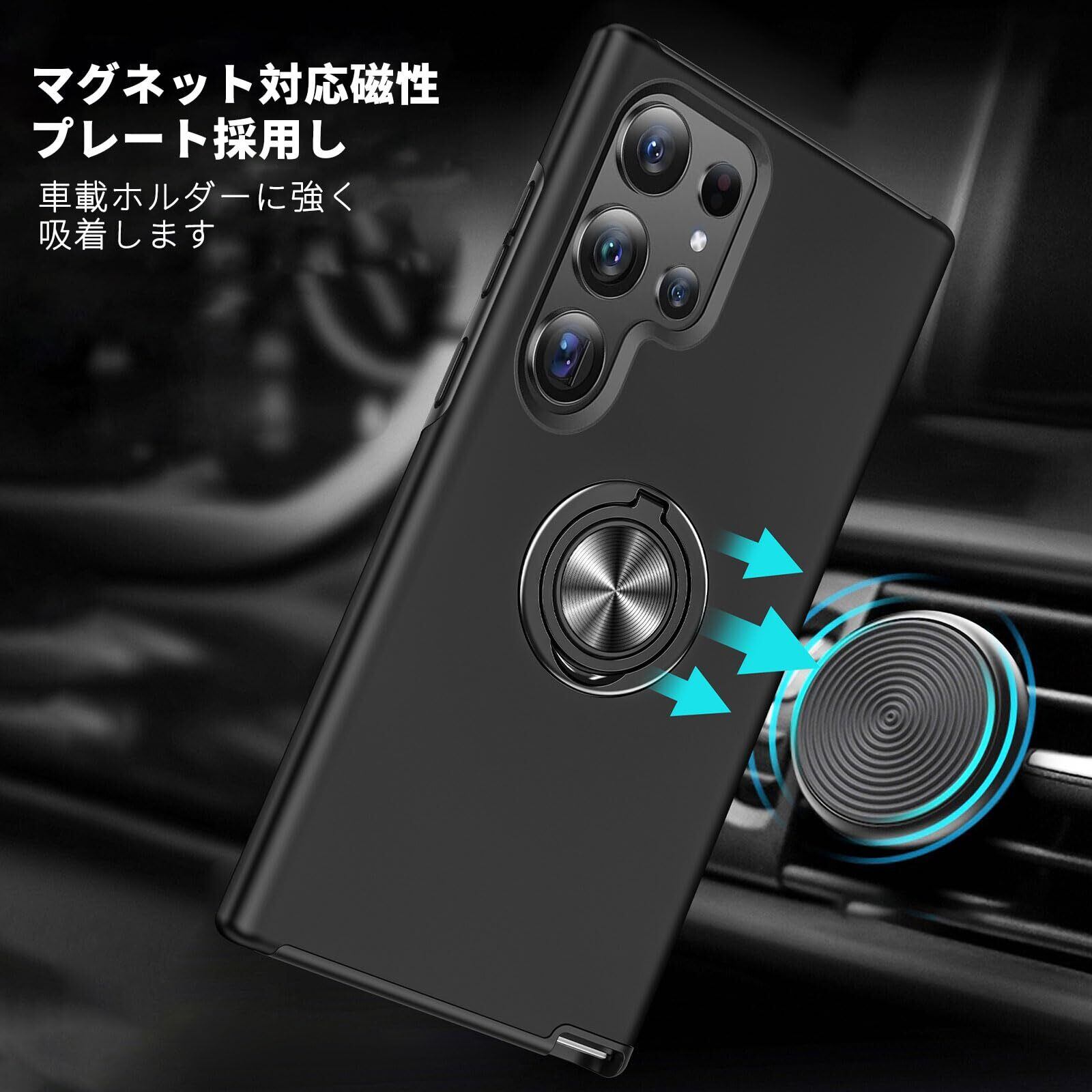 Samsung Galaxy S24 Ultra ケース リング 耐衝撃 TPU+PC バンパーケース ギャラクシーS24 ウルトラ スマホケース SC-52E SCG26 頑丈 スタンド機能 車載ホルダー対応 全面保護 落下防止 防塵 指紋防止 傷防止 衝撃吸収 Galaxy S24 Ultra 用 携帯カバー(ブラック)