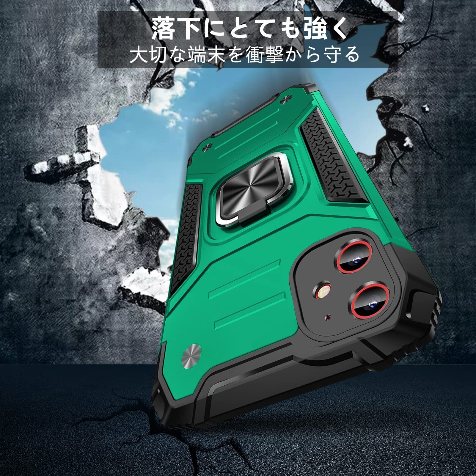 【Tgaoleyd】iPhone 12 mini 用ケース リング付き 耐衝撃 薄型 PC対応 衝撃吸収 tpu フルプロテクトデザイン 指紋防止 アイフォン 12ミニ 用ケース 5.4インチ 軽量 レンズ保護 車載ホルダー対応 シリコン バンパー 米軍MIL規格 擦り傷防止 人気 携帯カバー 緑 D70-92 CP