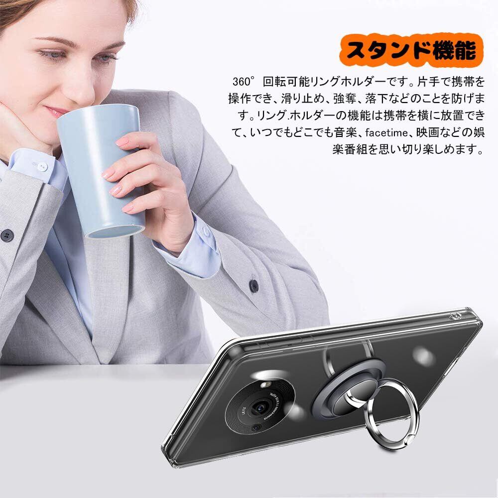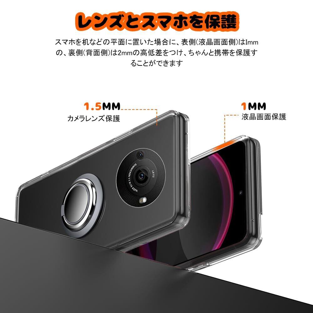 【新着商品】AQUOS R8 Pro ケース SH-51D リング付き 透明 アクオス R8 Pro ケース リング クリア シリコン 薄型 スタンド機能 耐久 滑り止め(AQUOS R8 Pro クリア)