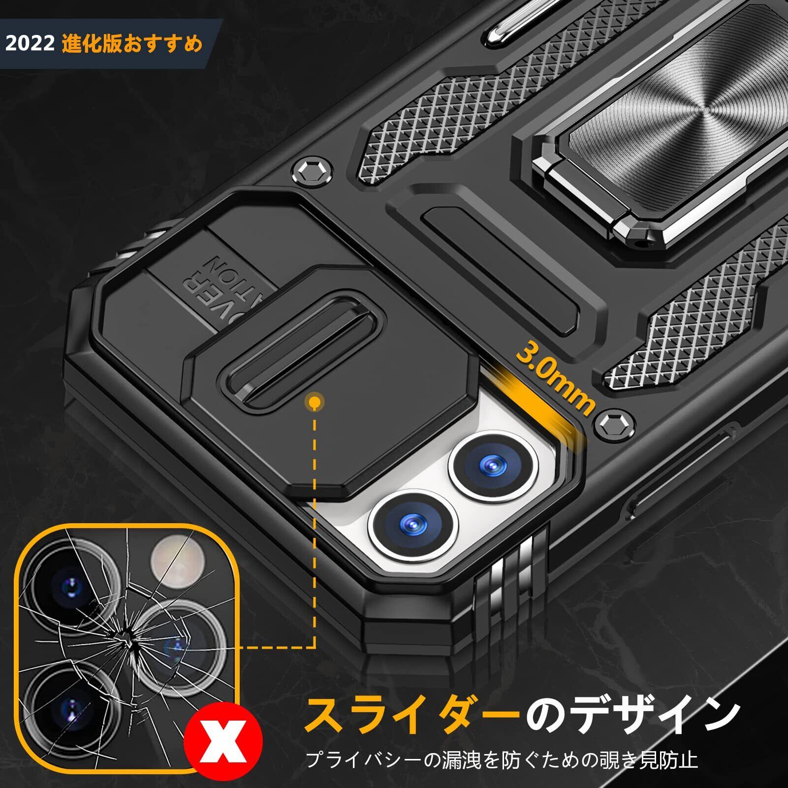 iPhone 11 Pro Max 用 ケース リング付き スライド式カメラプロテクター付き PC 米軍MIL規格取得 耐衝撃 スタンド機能 車載ホルダー対応 擦り傷防止 滑り止め 格好いい おしゃれ 人気 アイフォン 11 Pro Max 用 カメラカバー 黒 MDYS-KJ-04-01