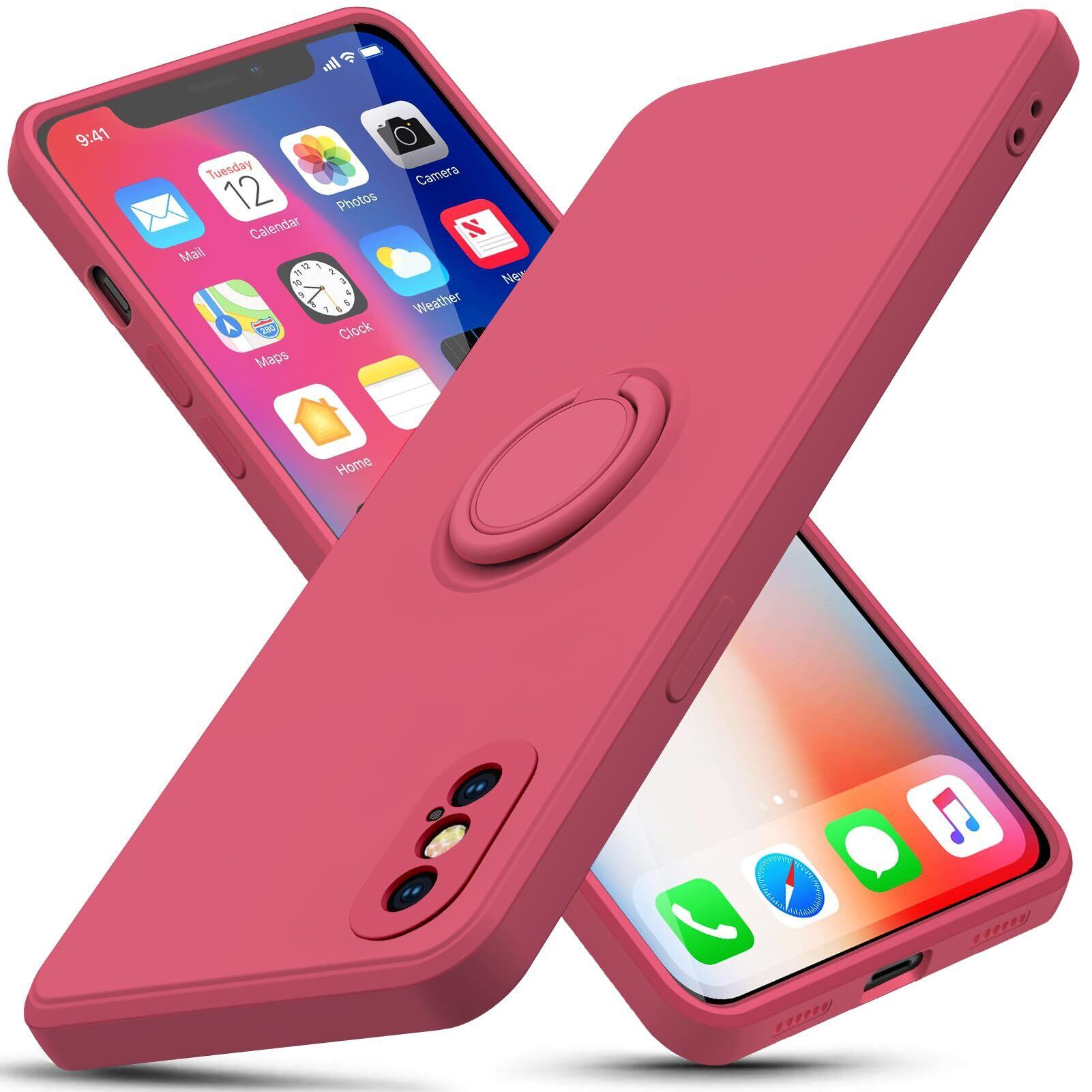 iPhone Xs 用 ケース iPhone X 用 ケース リング付き 耐衝撃 TPU 車載対応ホルダー対応 スマホケース シリコン スタンド機能 360度回転 薄型 軽量 アイフォンXs 用ケースカバー 衝撃吸収 カメラ保護 耐摩擦 一体型 手触り良い 散熱加工 携帯カバー レッド SJ11.66