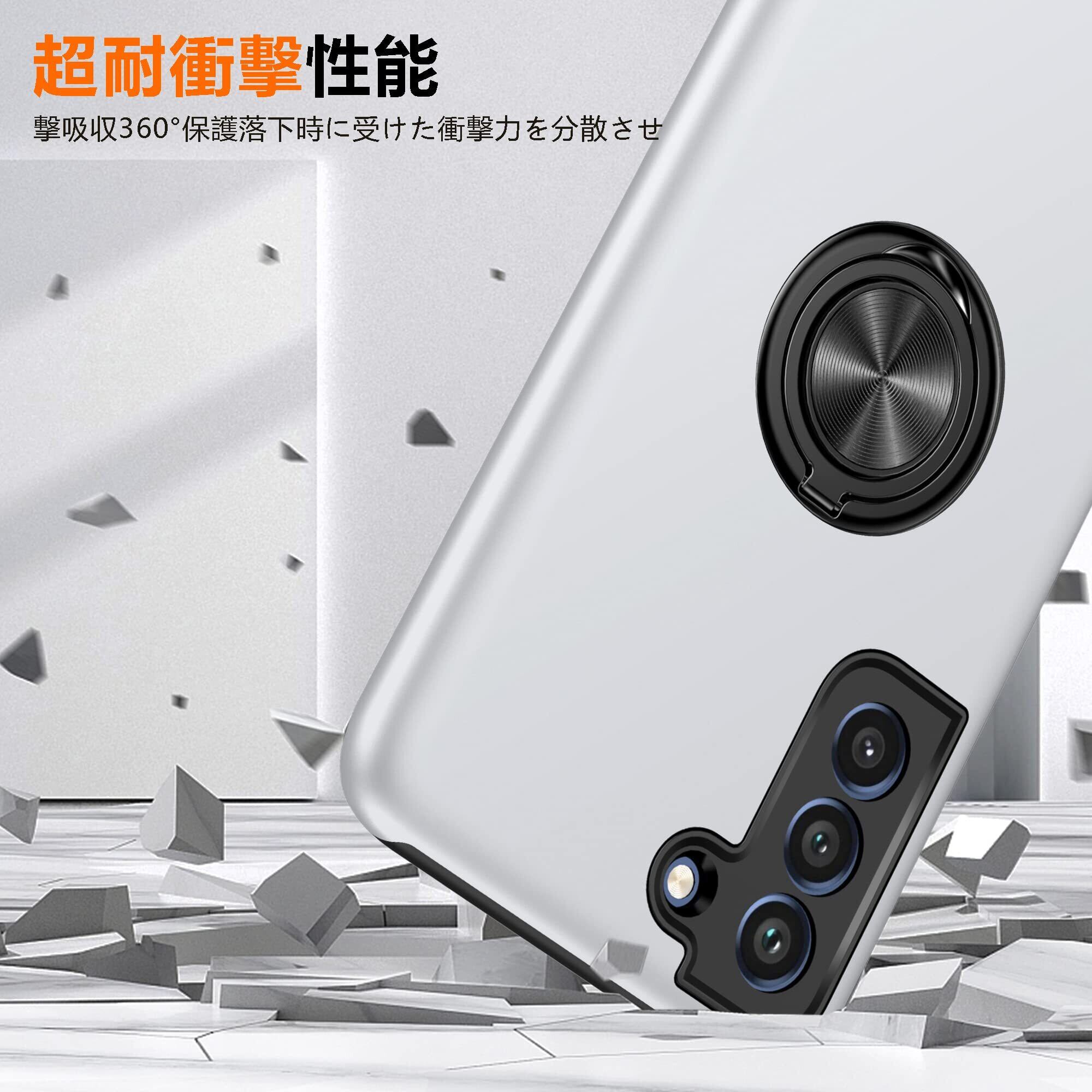 Galaxy S22 Ultra ケース [ SC-52C | SCG14 ] 保護カバー リング付き 耐衝撃 衝撃吸収 tpu 薄型 擦り傷防止 薄型 シリコン スタンド機能 車載ホルダー対応 二重構造 PC バンパー ギャラクシーS22 Ultra スマホケース 米軍MIL規格 全面保護 360°回転 おしゃれ 人気 携帯カバー(銀)QH44-YSZH-S22U-YIN