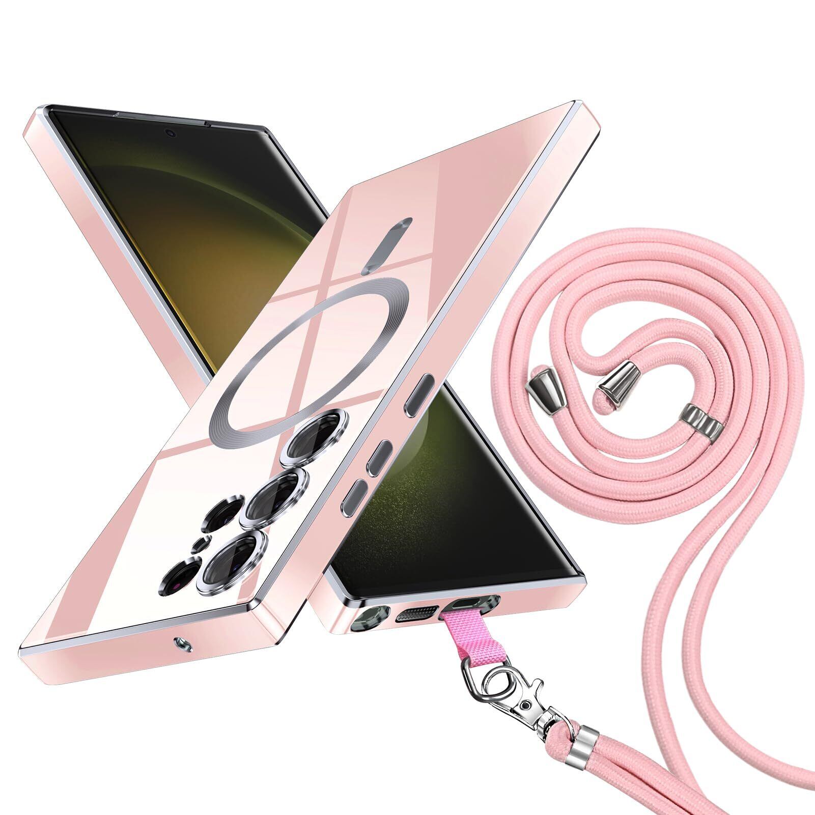 Galaxy S22 Ultra ケース ショルダー 耐衝撃 SC-52C SCG14 スマホ カバー Magnetic対応 可能 調節可能な ショルダー 肩がけ 首掛け 紐付き 薄型 TPU 吸収 磁気充電 ワイヤレス充電対応 取り外し可能 落下防止 紛失防止 ピンク YLR-16-S22U-03