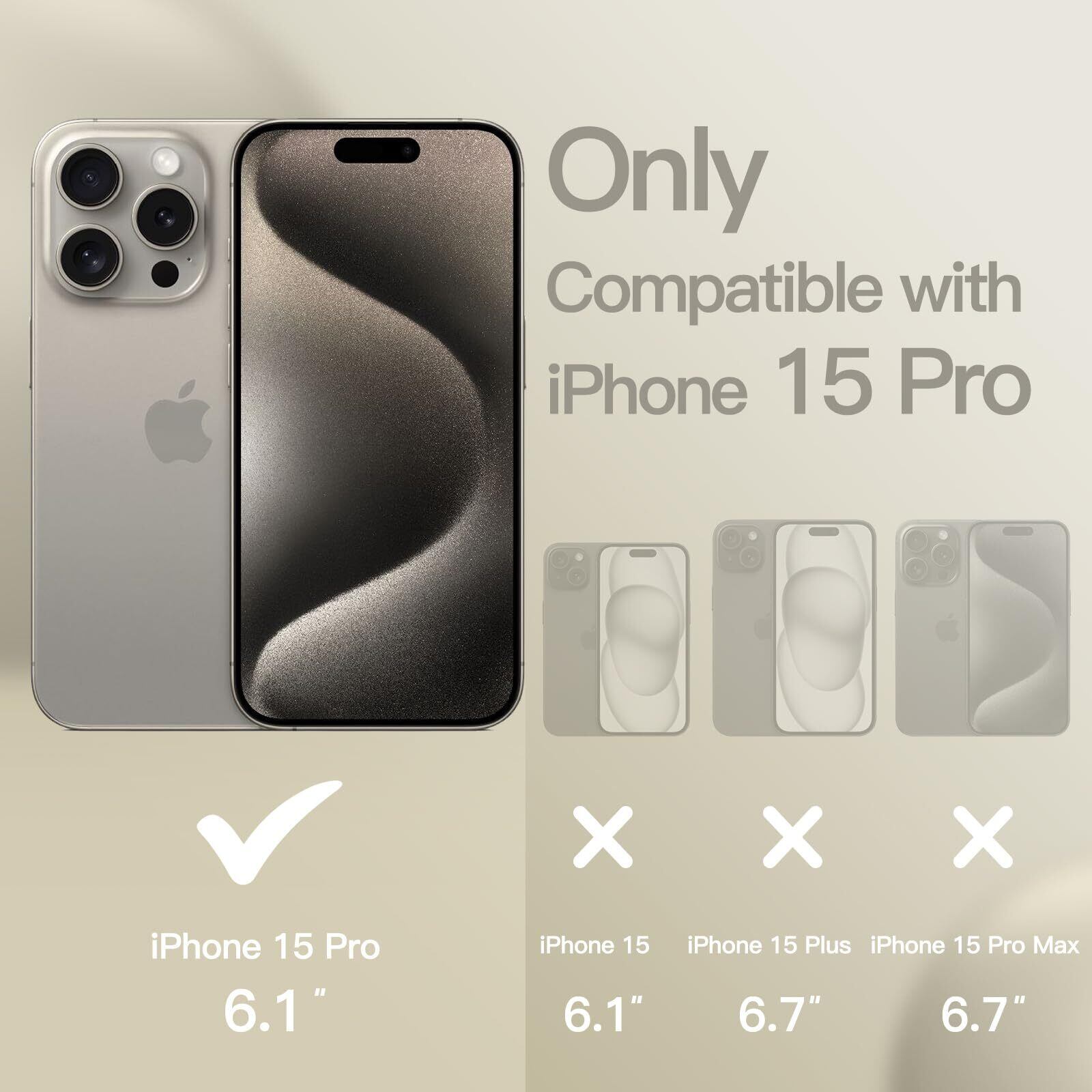 [対応機種]iPhone 15 Pro 6.1インチ専用設計。注:iPhone 15 Pro Max 6.7インチには対応できません。正確なカットアウトにより、スピーカー、カメラ、ボタン、その他のポートに完全にアクセスできます