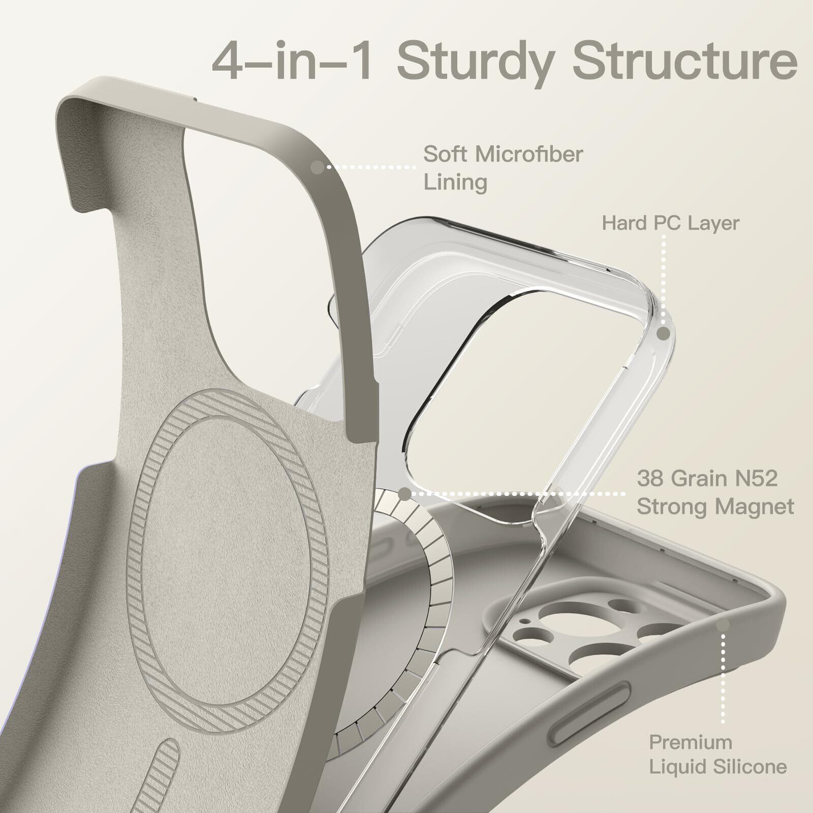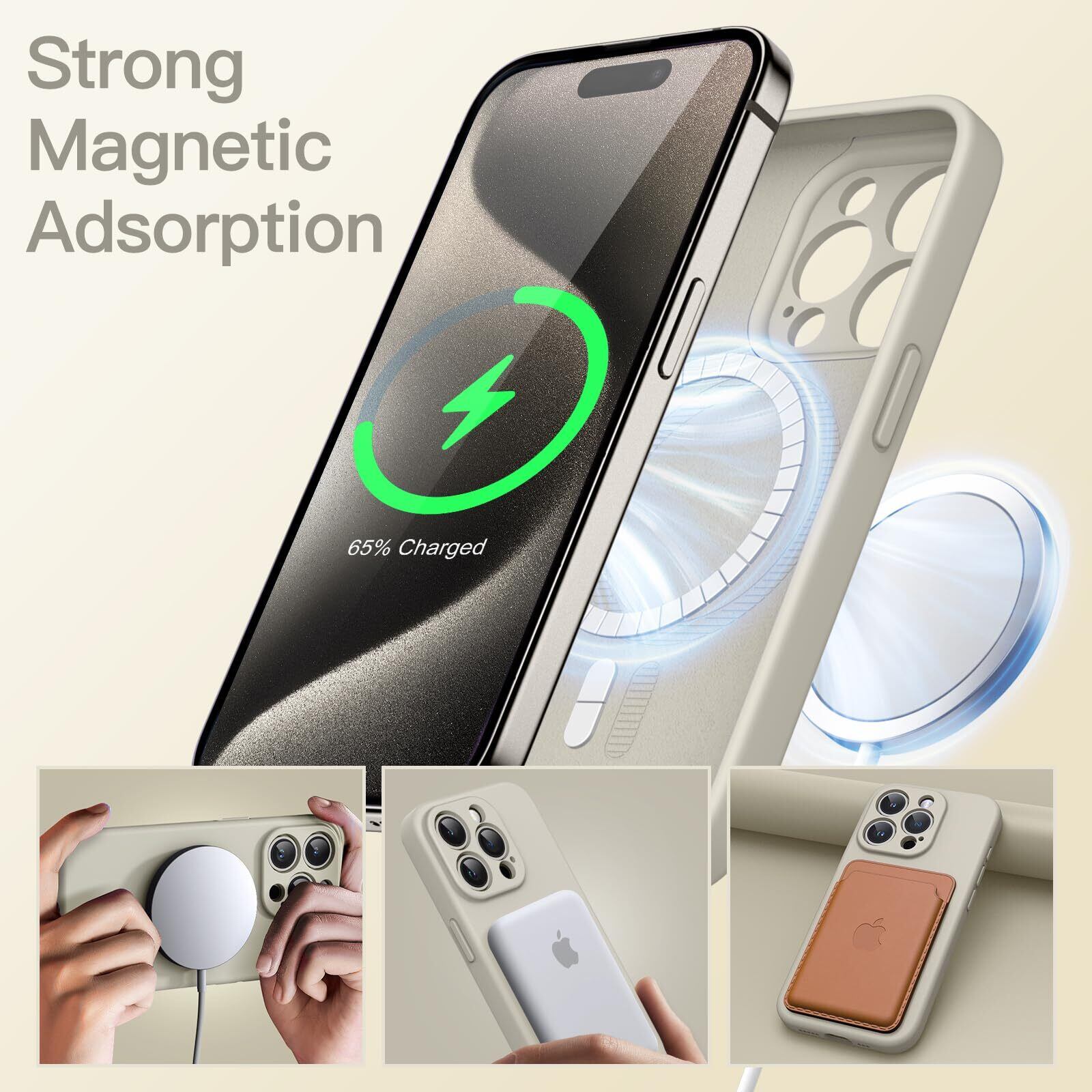 【数量限定】JETech iPhone 15 Pro 6.1インチ用 マグネット シリコンケース MagSafe対応 シルキーソフトタッチの電話カバー カメラレンズ保護 (ナチュラルチタニウム)