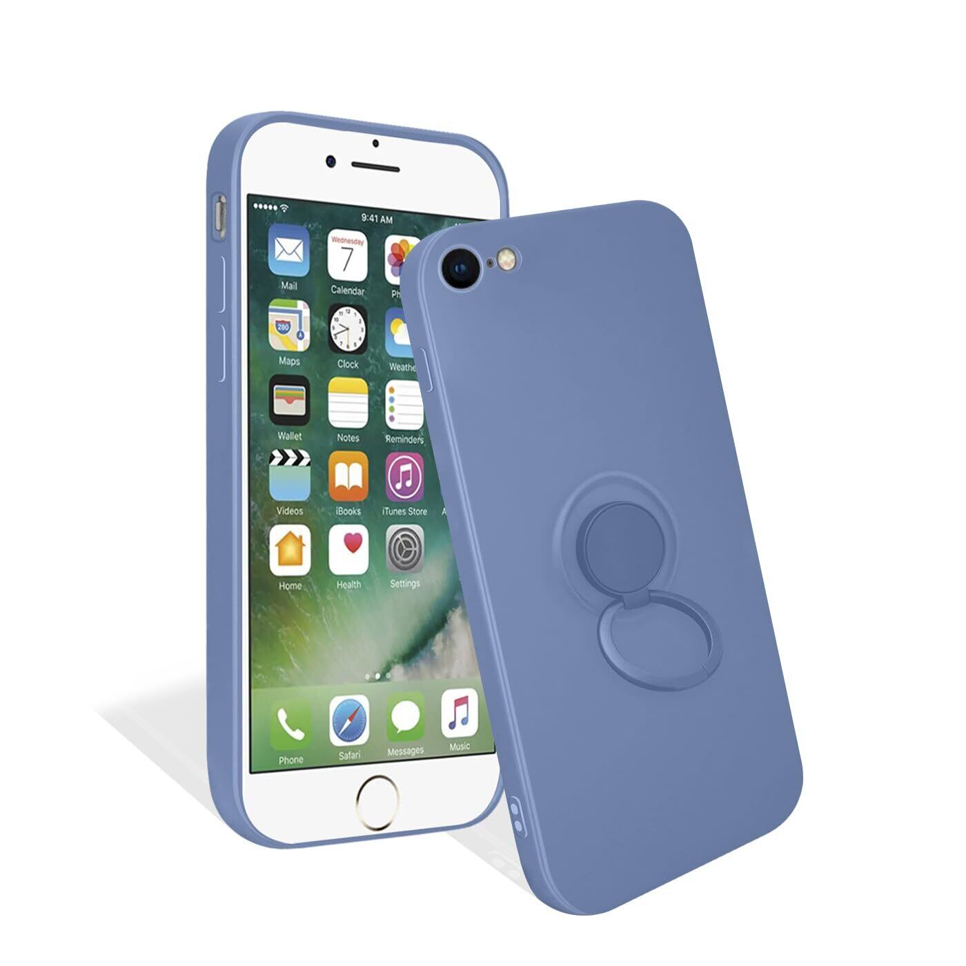 iPhone SE3 / SE2 / 8 / 7 ケース リング付き シリコン 耐衝撃 アイフォン SE 第3世代 第2世代 カバー 全面保護 いphone SE2 スマホケース TPU 360°回転 スタンド機能 車載スタンド対応 ストラップホール付き 擦り傷防止 4.7インチ(グレー)