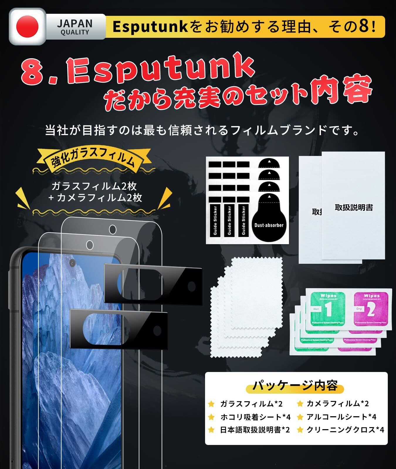 Esputunk Google Pixel 8a ガラスフィルム (2枚)+ Google Pixel8a カメラフィルム(2枚) 【高透過率-日本旭硝子素材製-4枚】 Google Pixel8a フィルム 全面保護 硬度9H 極薄0.28mm 耐衝撃 自動吸着 気泡防止 指紋防止 グーグルピクセル8a ガラスフィルム+グーグルピクセル 8a レンズフィルム