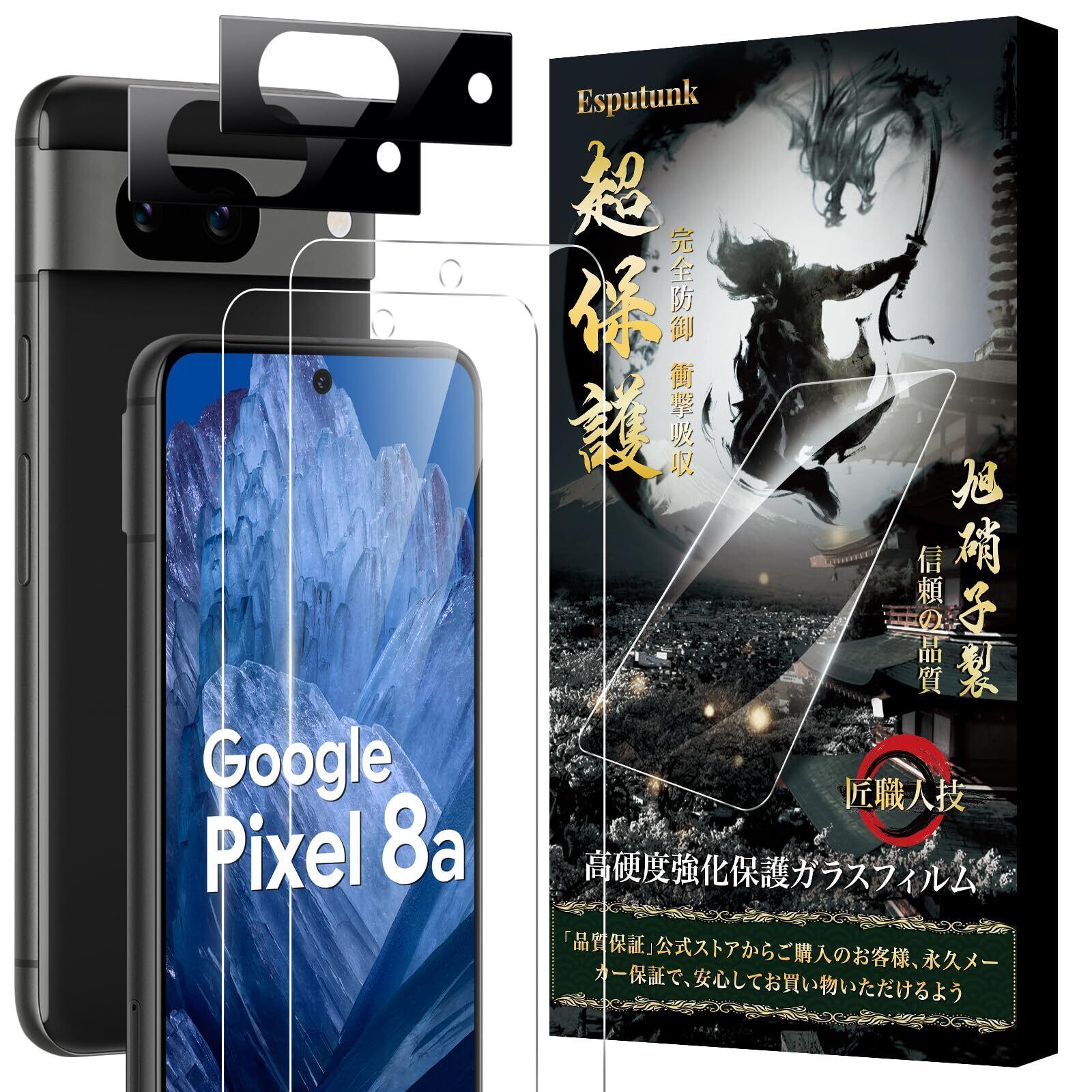 【在庫セール】Esputunk Google Pixel 8a ガラスフィルム (2枚)+ Google Pixel8a カメラフィルム(2枚) 【高透過率-日本旭硝子素材製-4枚】 Google Pixel8a フィルム 全面保護 硬度9H 極薄0.28mm 耐衝撃 自動吸着 気泡防止 指紋防止 グーグルピクセル8a ガラスフィルム+グーグルピクセル 8a レンズフィルム