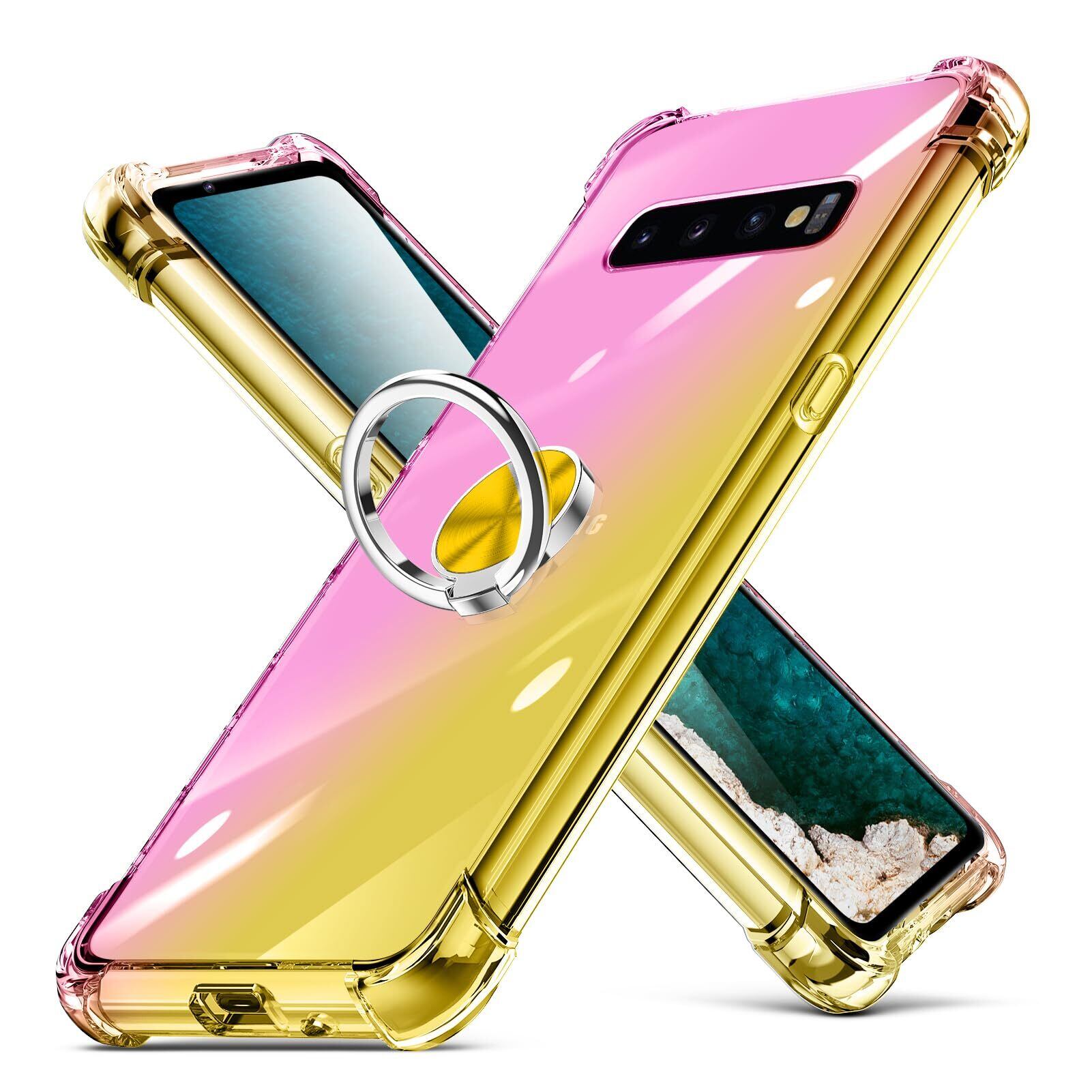 Galaxy S10 用 ケース リング クリア 透明 スリム 薄型 TPU SC-03L/SCV41 カバー 耐衝撃 クリア 透明 スリム 薄型 グラデーション スタンド機能 車載ホルダー TPU 黄変防止 指紋防止 防塵 滑り防止 人気 携帯カバー ピンク+金D634-S10-03