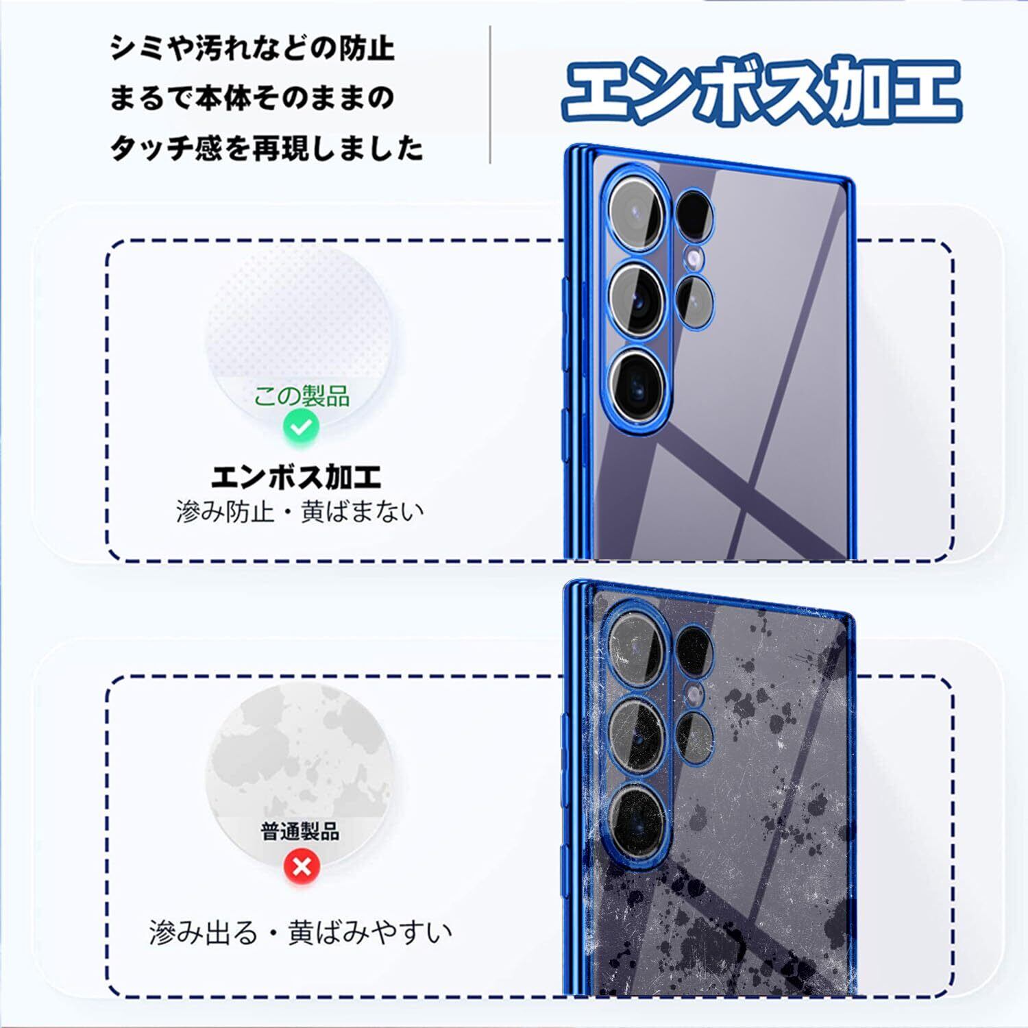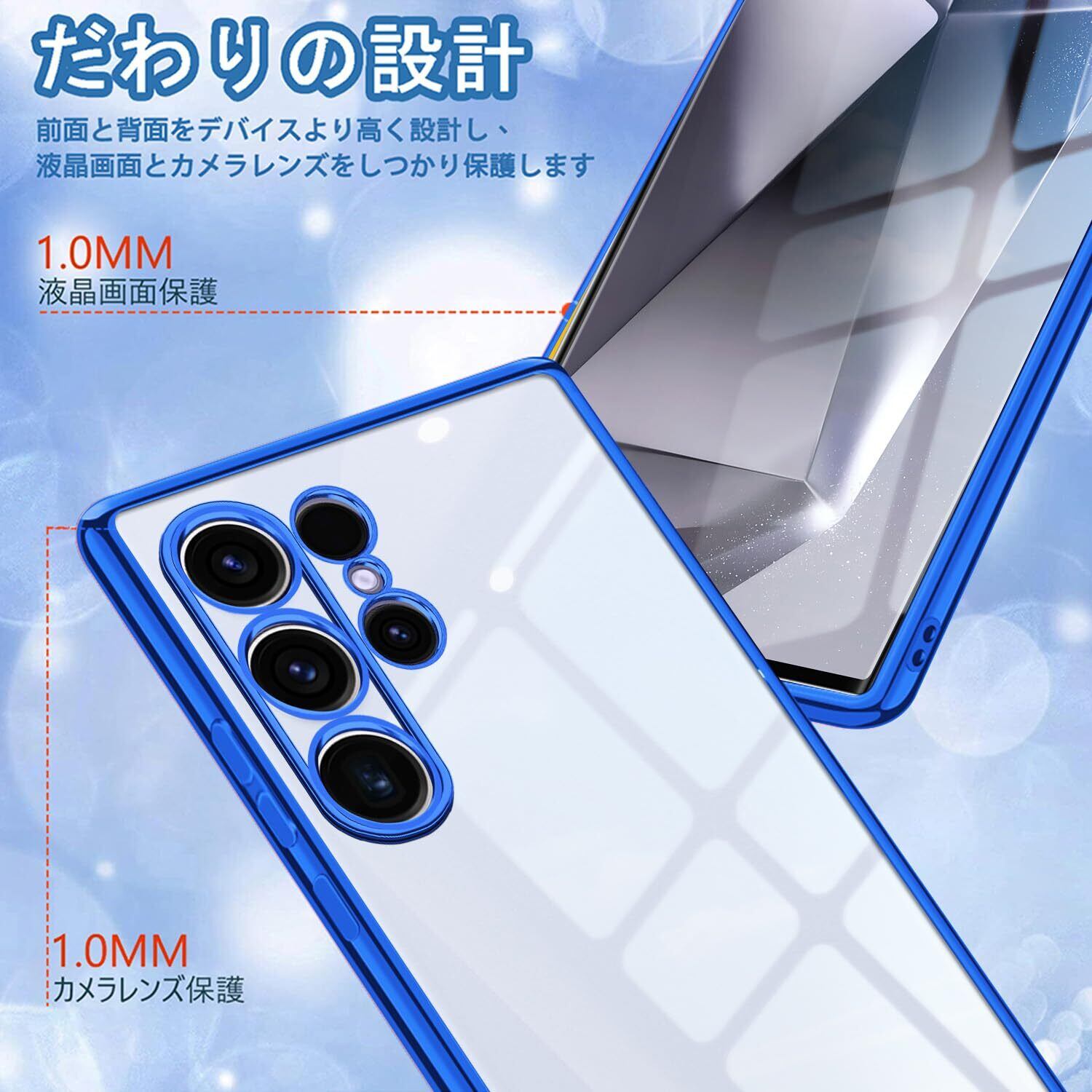 Galaxy S24 Ultra ケース クリア ギャラクシー S24Ultra SC-52E SCG26 カバー 薄型 軽量 透明 ソフト 耐衝撃 メッキ加工 スリム TPU 傷つけ防止 人気 全面保護 スマホケース ブルー