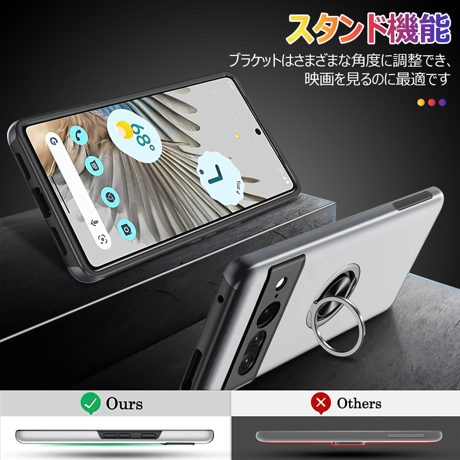 【在庫処分】Google Pixel 7A ケース リング付き 耐衝撃 tpu pc 二重構造 全面保護 一体型スマホケース グーグル ピクセル 7a ケース 衝撃吸収 シリコン 360°回転 スタンド機能 軽量 薄型 車載ホルダー対応 米軍MIL規格 指紋防止 人気 携帯カバー 銀 ZW75-105