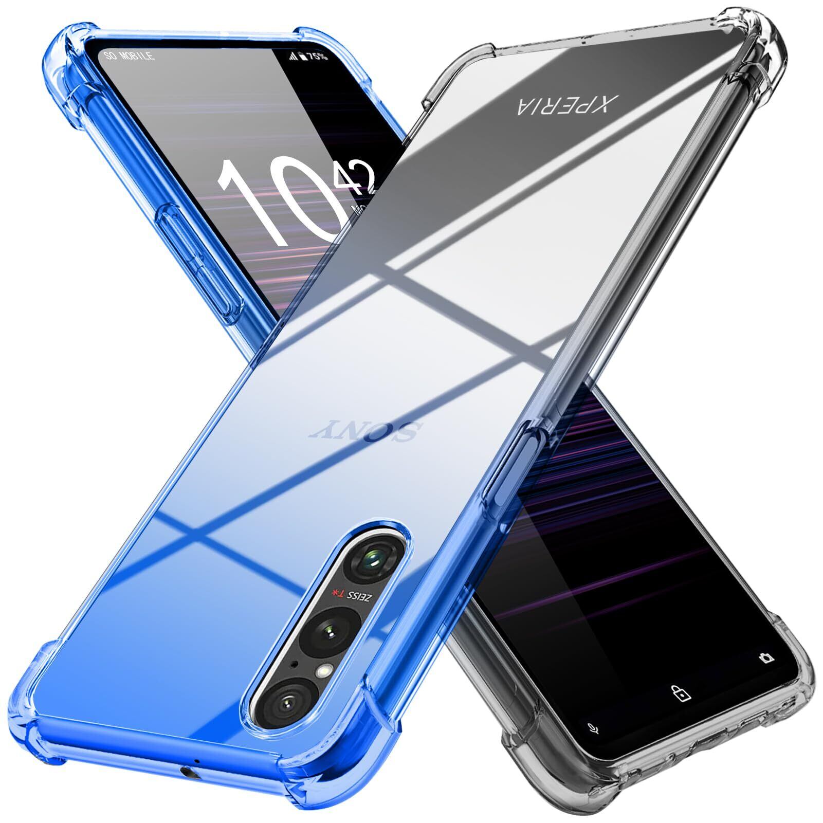 Xperia 1 V 用 ケース クリア 薄型 グラデーション色 ケース SO-51D/SOG10 用 ケース 軽量 tpu 耐衝撃 スマホケース 透明 米軍MIL規格取得 おしゃれ 黄変防止防塵一体型 人気 ソニー エクスペリア 1 V 用 携帯カバー ブルーブラック MD-SXJB-33-03