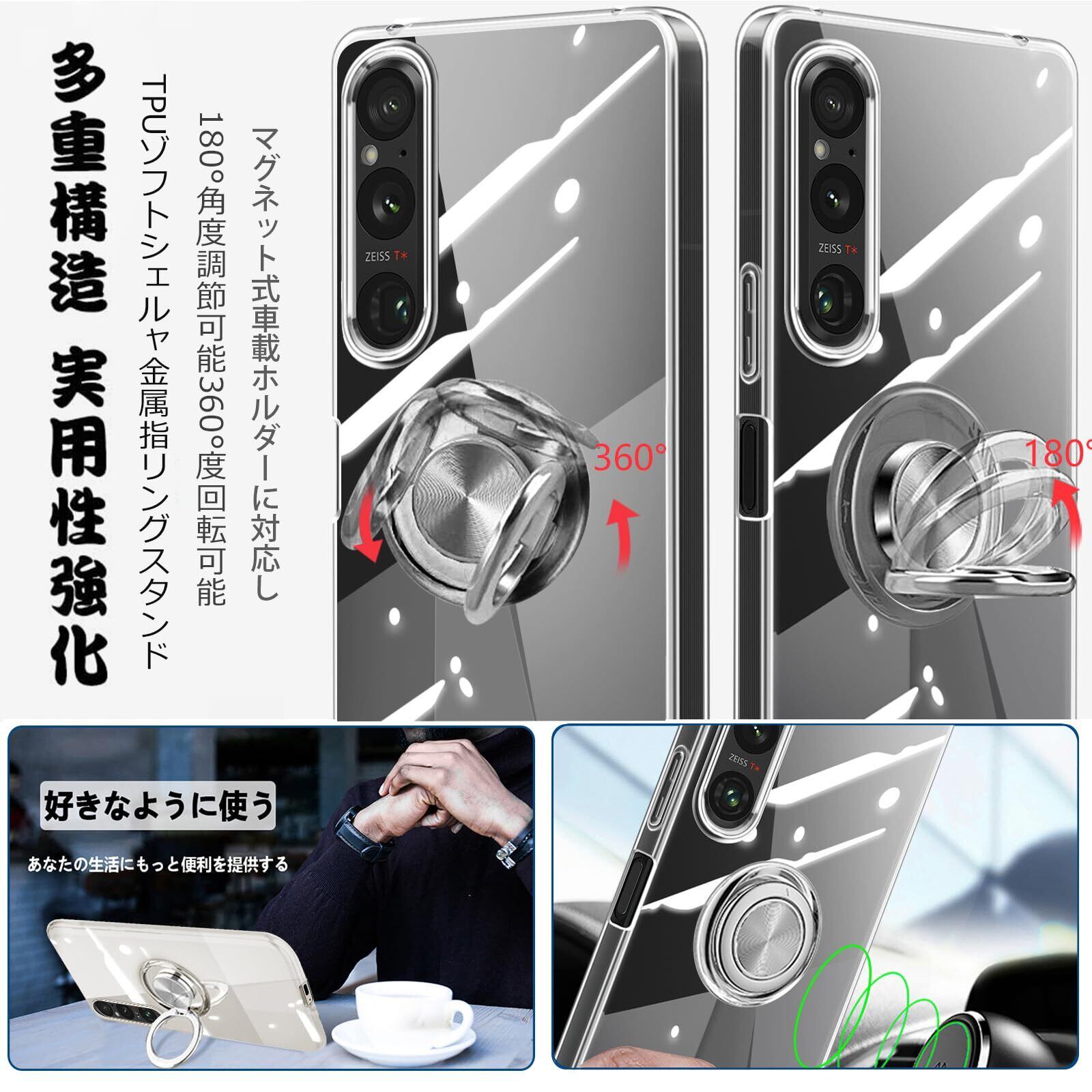 【数量限定】Xperia 1 V ケース リング 透明 SOG10 SO-51D カバー クリア エクスペリア1 V スマホケース TPU 耐衝撃 薄型 スリム 傷つけ防止 スタンド機能 一体型 ソニー Xperia 1 v sog10 カバー 全透明