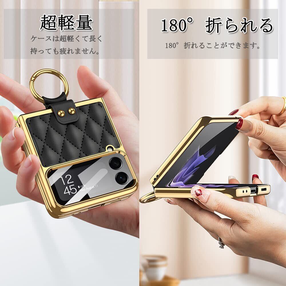 【お洒落|リング付き|横置きスタンド】Galaxy Z Flip 4 カバーはPUレーザーを採用して高級感があります。質感、手触りが一番です。カラーはGalaxy Z Flip 4スマホをお似合いです。ケースのバック面も模様入りでとてもファッションです。Galaxy Z Flip 4 カバーもリングを付いて横置きで動画鑑賞や読書などができます。また、リング付きで指がリングに通り抜けば、片手で携帯を操作できて落下防止もできます。