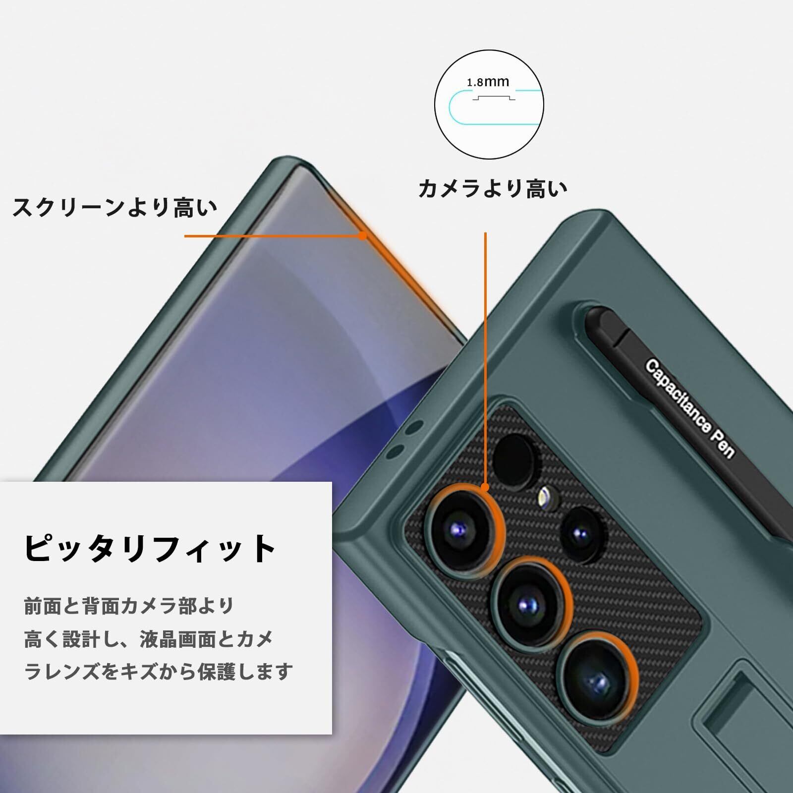 【特価商品】【NINKI】適応Galaxy S24 Ultra ケース キックスタンド付き with pen タッチペンあり 男女兼用 頑丈 極薄型 軽量 PC 耐衝撃 カメラ保護 指紋防止 衝撃防止 精密にアクセス ワイヤレス充電 Galaxy S24 Ultra 5G 保護カバー ギャラクシー S24 ウルトラ 5G 保護ケース(グリーン)