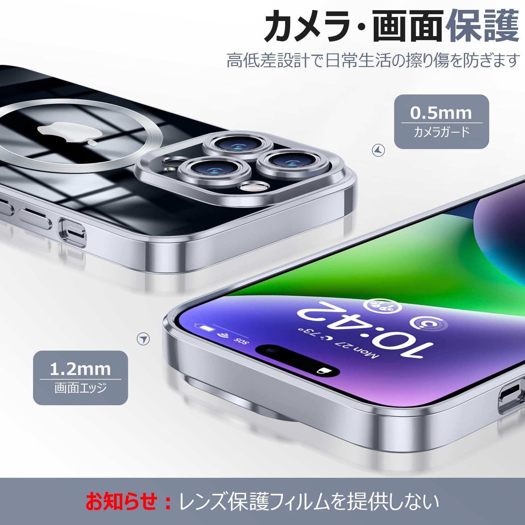 【画面とカメラの保護】液晶画面とカメラレンズより高くデザインされ、さらに、背面に約0.5㎜の突起があり、カメラレンズをキズから保護できます。スクリーンやレンズの破損リスクを低減、高額の修理費を節約。