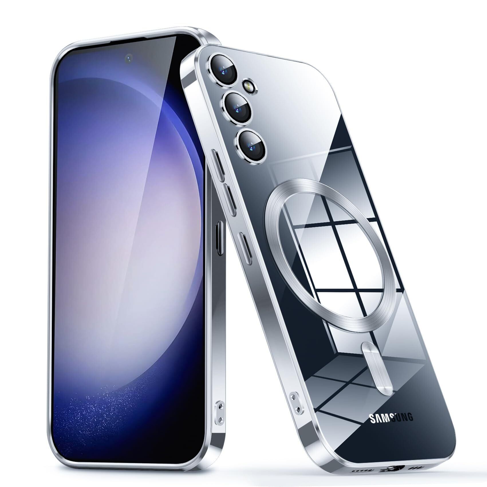 【特価セール】Galaxy S24 用ケース クリア メッキ加工 ワイヤレス充電 軽薄型 TPU ソフト ギャラクシー S24 ウルトラ 用スマホケース 耐衝撃 米軍MIL規格取得 黄変防止 耐久性 ストラップ穴付き おしゃれ ケース 銀 D77-38