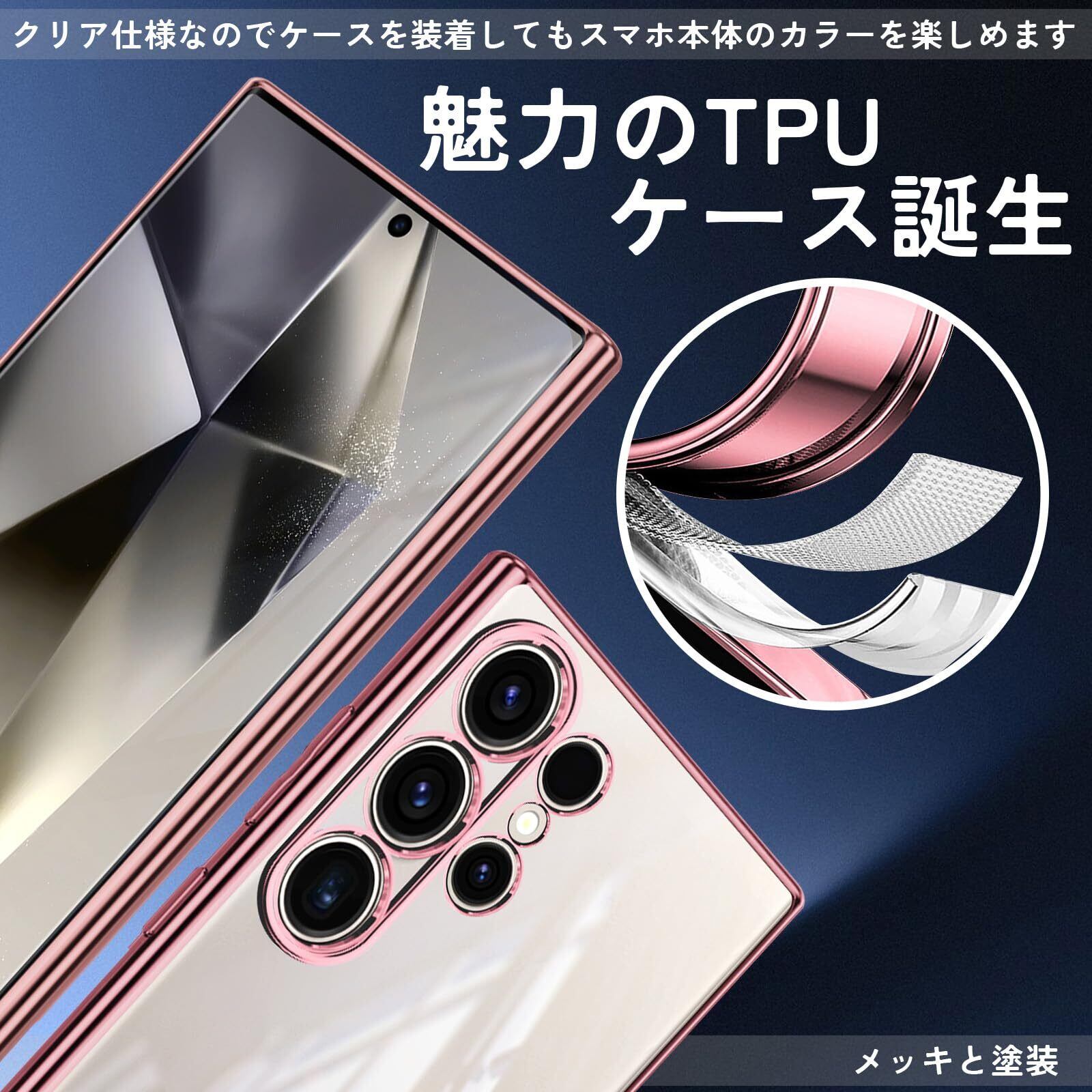 Galaxy S24 Ultra ケース クリア SC-52E TPUカバー SCG26 スマホケース 耐衝撃 透明 ストラップホール付き ギャラクシーS24 Ultra ケース ローズゴールド